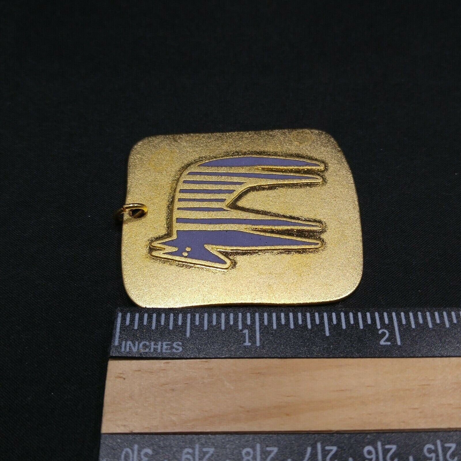 Vintage Laurel Burch "STRIPED BEAST" Large Pendant, Satin Finish, Gold Plated