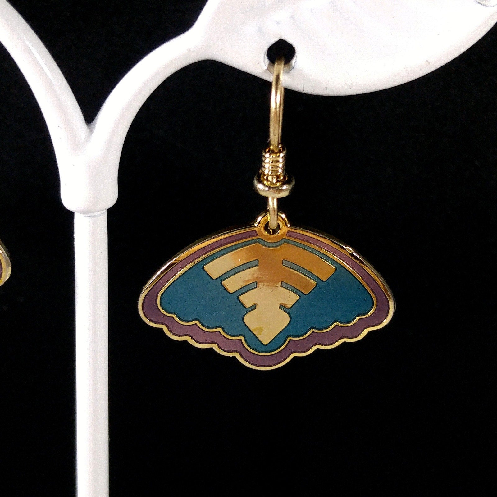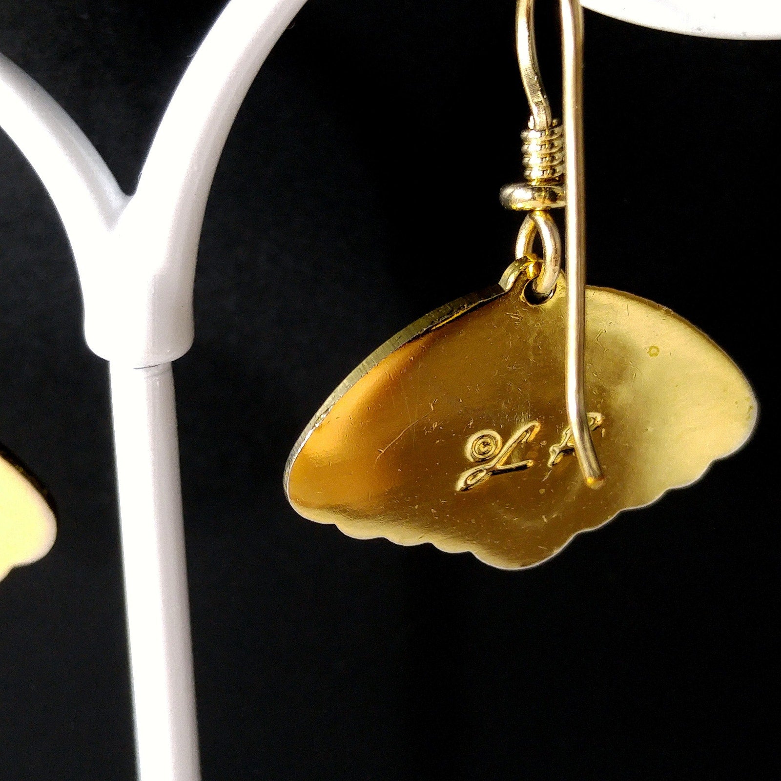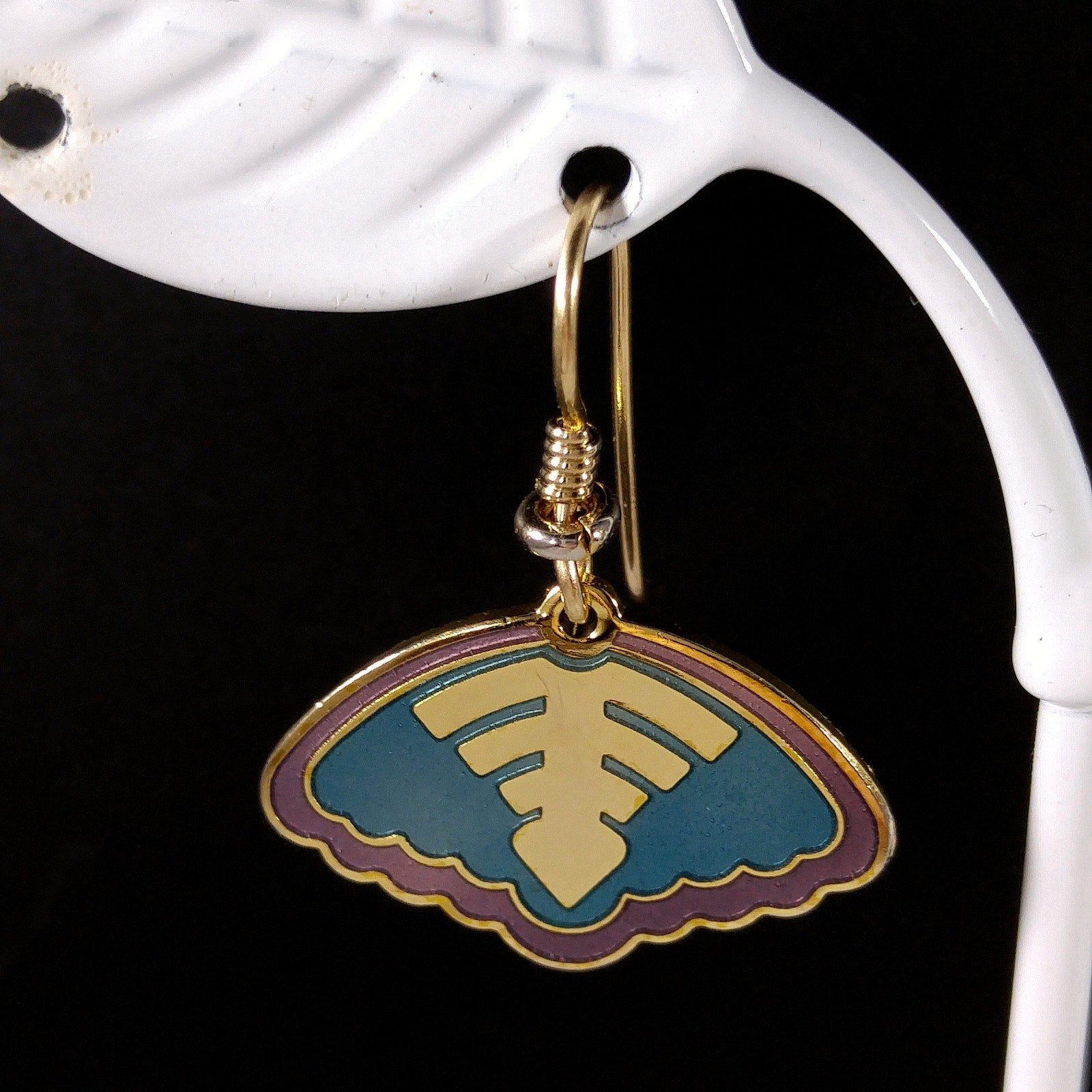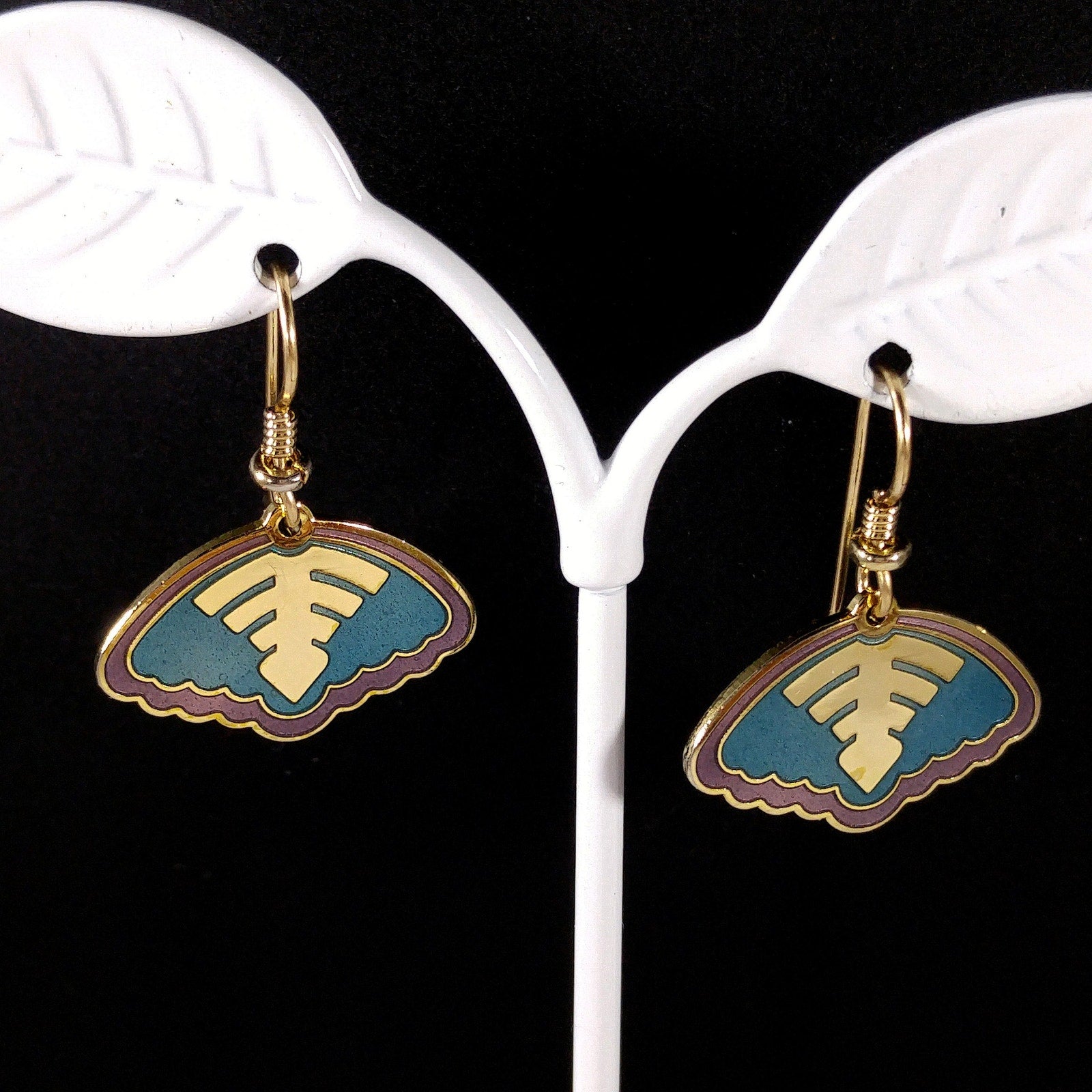 *Description: This is a great pair of vintage Laurel Burch earrings in cloisonne gold plate and enamel in teal and purple from the 1980s. The enamel has an almost metallic appearance and the teal and purple look beautiful together outlined in gold. The design looks like an abstract butterfly. This would be a great addition to your vintage jewelry collection or make a great vintage gift!