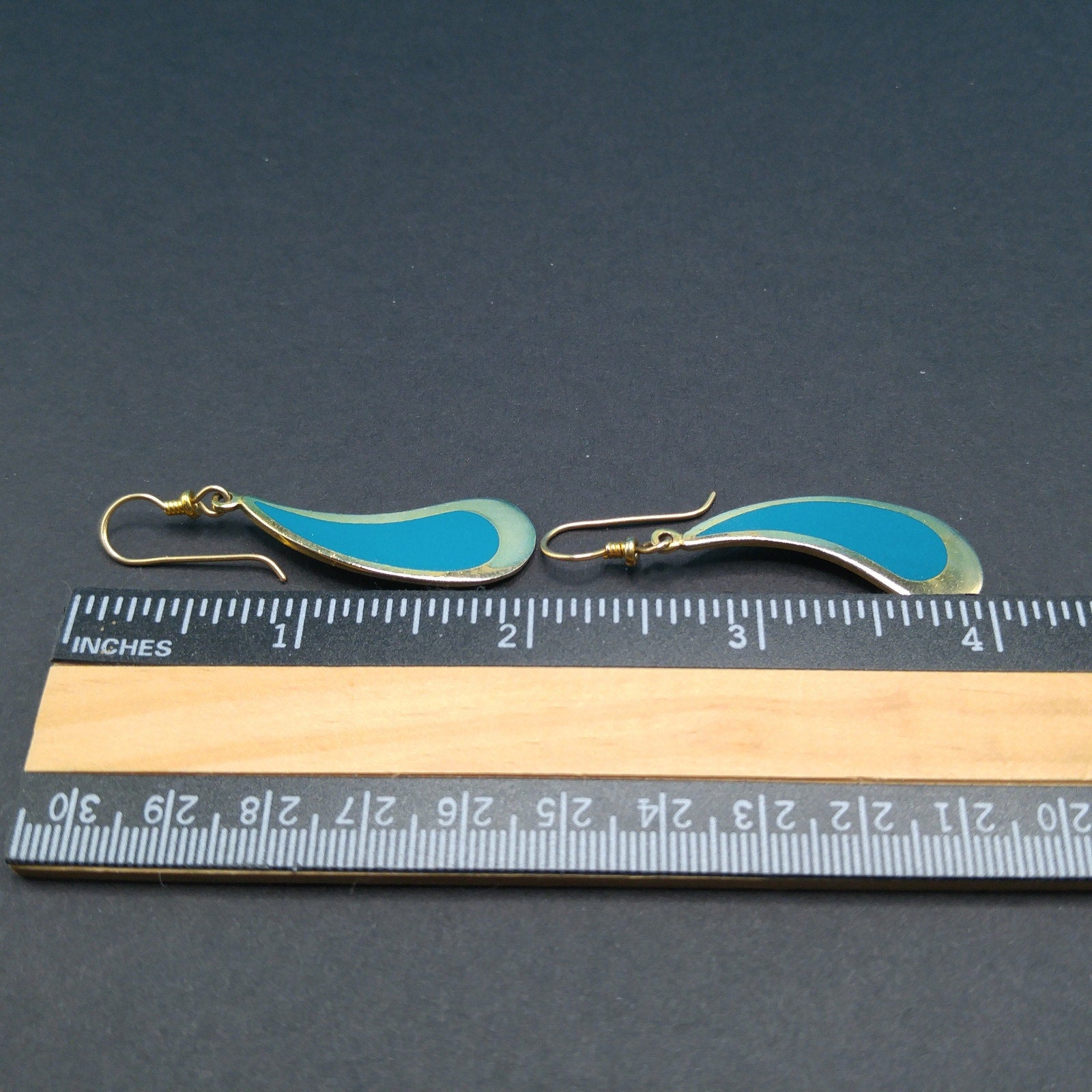Vintage Laurel Burch Turquoise Drop Earrings, Curved Teardrop, Gold Plated