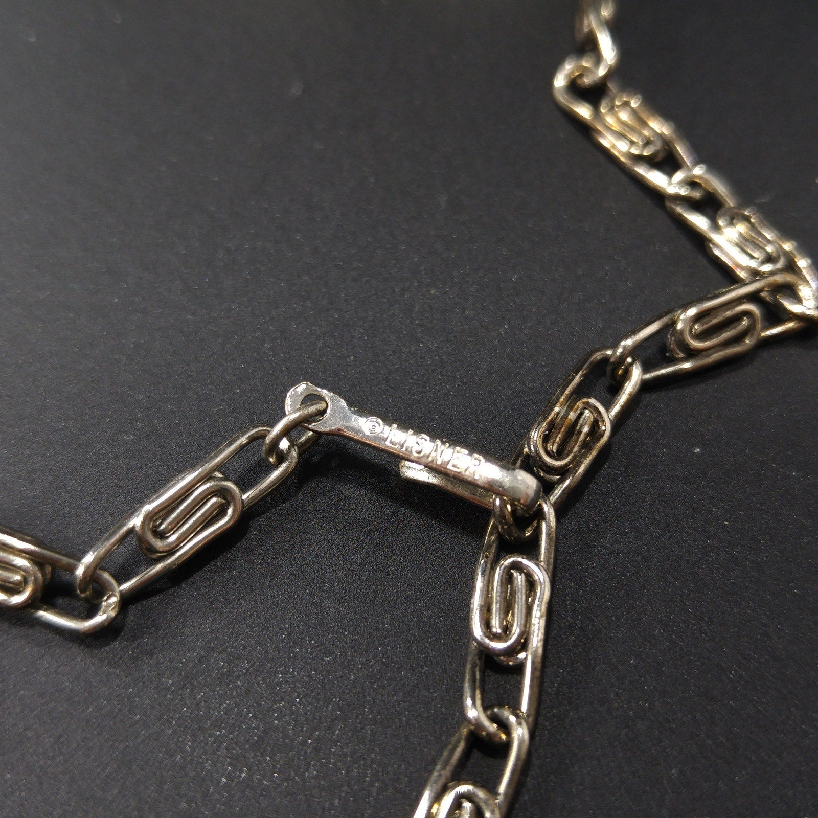*Condition: Great vintage condition. Some plating discoloration on back of necklace. Frontal necklace rhodium plated. Some glue may be seen under magnification.