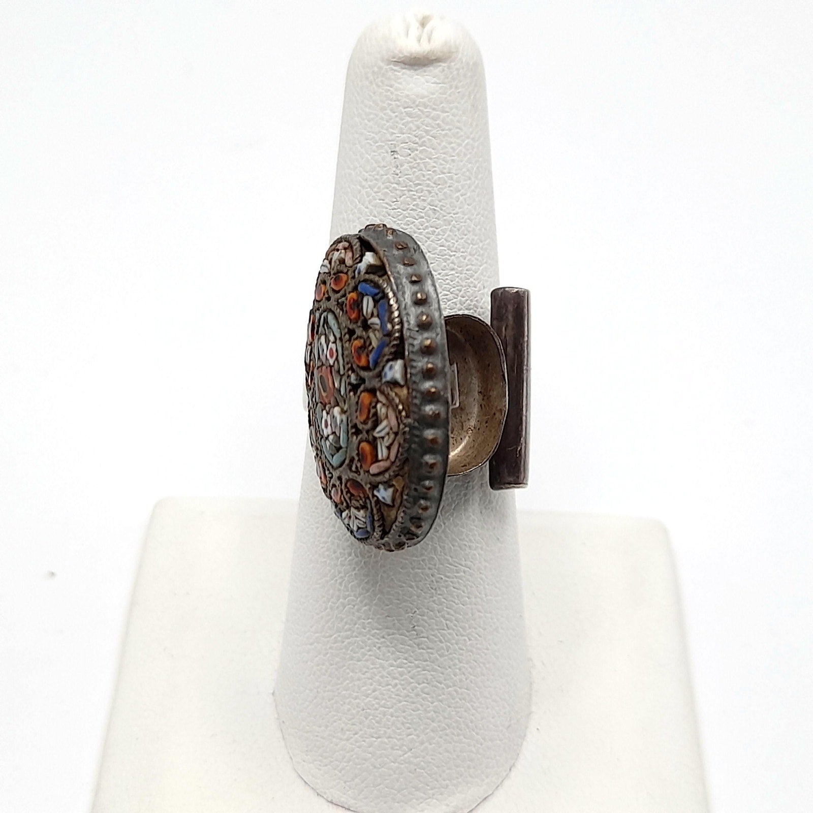 Vintage Micro Mosaic Poison Ring, Stamped Mexico, US Size 7 Adjustable