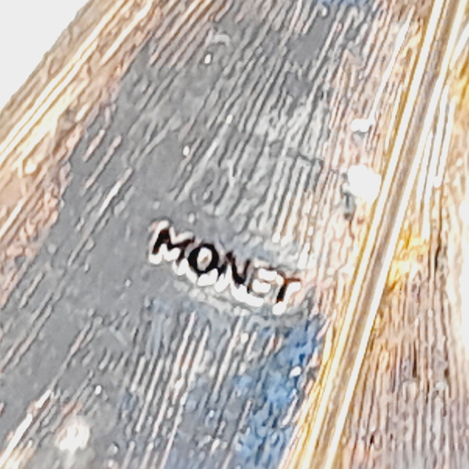 This is a beautiful vintage MONET angel brooch sparkling with clear rhinestones on a gold tone background. The angel is blowing a trumpet and has detailed wings and gown covered in prong-set crystals. It measures 2 inches and is signed MONET on the back. Perfect for Christmas outfits, winter sweaters, holiday jackets, or to add to a Monet jewelry collection. In very good vintage condition — a lovely gift or collectible piece!