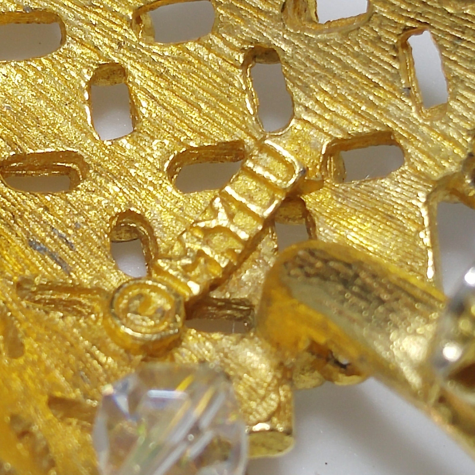 This brooch is featured in Christmas Tree Pins O Christmas Tree by Nancy Yunker Trowbridge (page 113), where it is noted as one of the more unique and hard-to-find designs. The gold-plated finish tests at approximately 18K on the surface, adding to its collectible appeal.