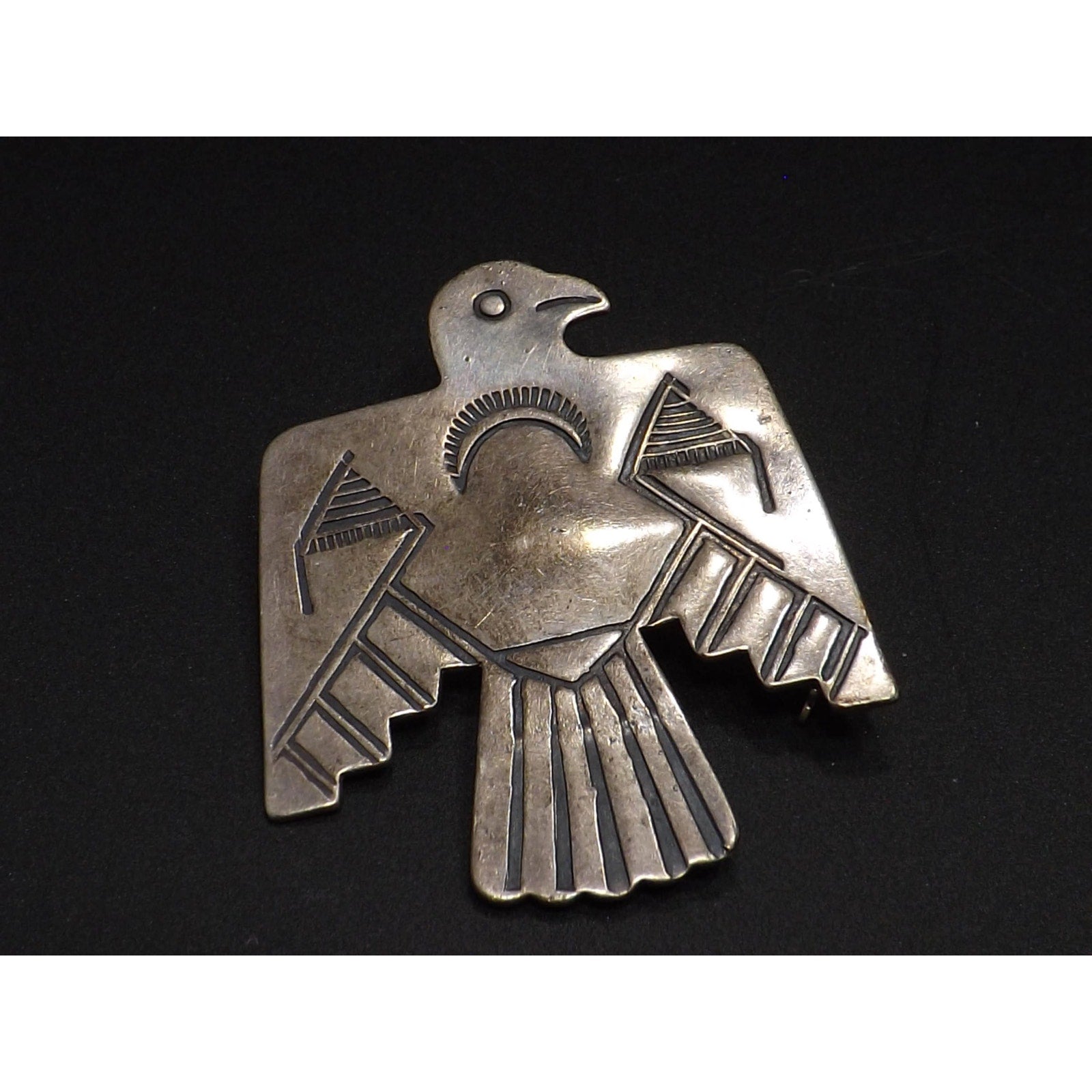 Vintage Navajo Coin Silver Thunderbird Brooch IH Mark Native American 900 Silver