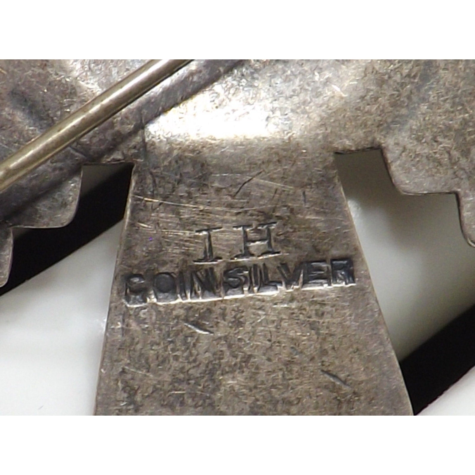 The hallmark IH is listed on the “Indian Native American Jewelry Artists & Southwest Shop Hallmarks” reference site. While not definitively confirmed, the mark is consistent with Ivan Howard, a Navajo artist known for using an “I H” hallmark on his coin silver and sterling work.