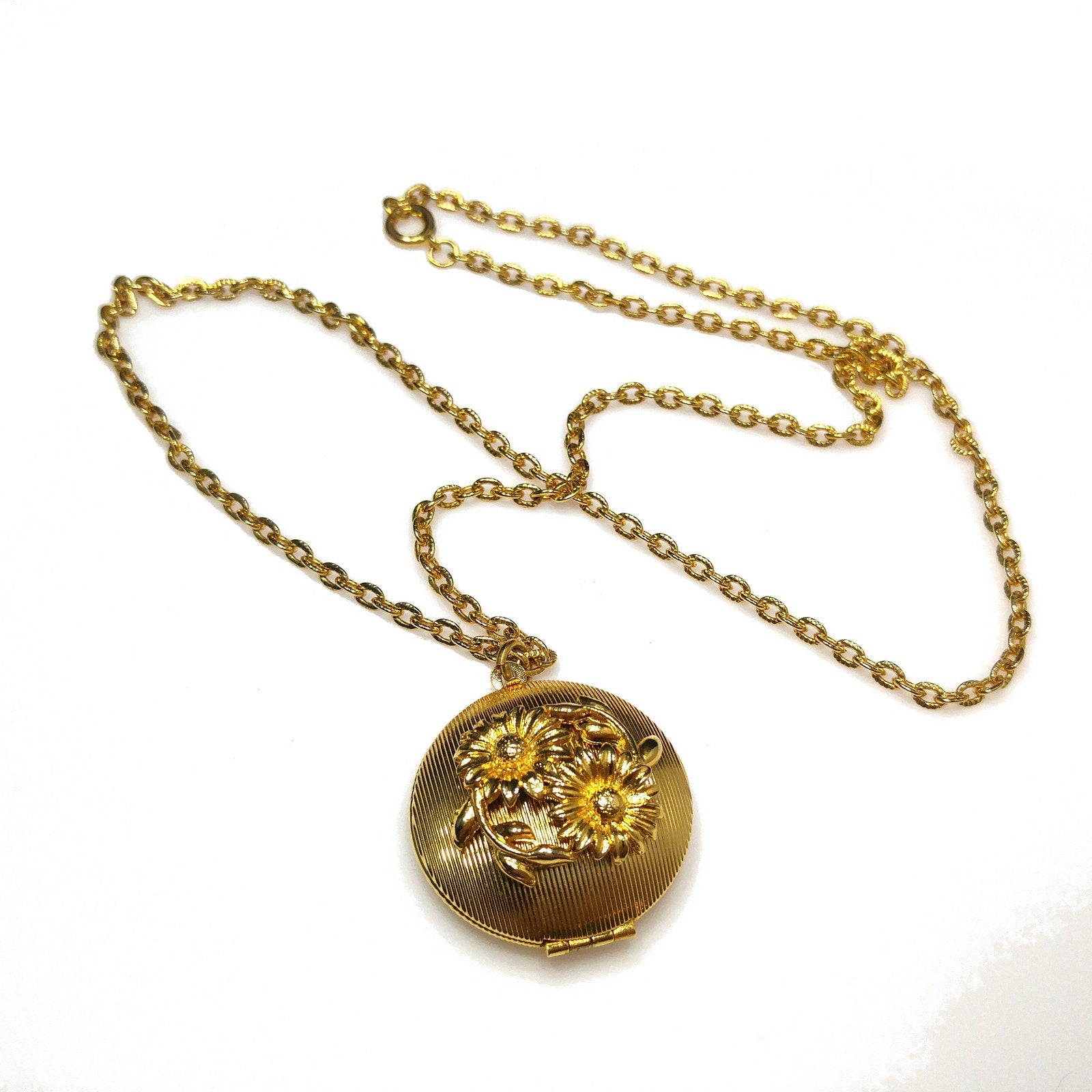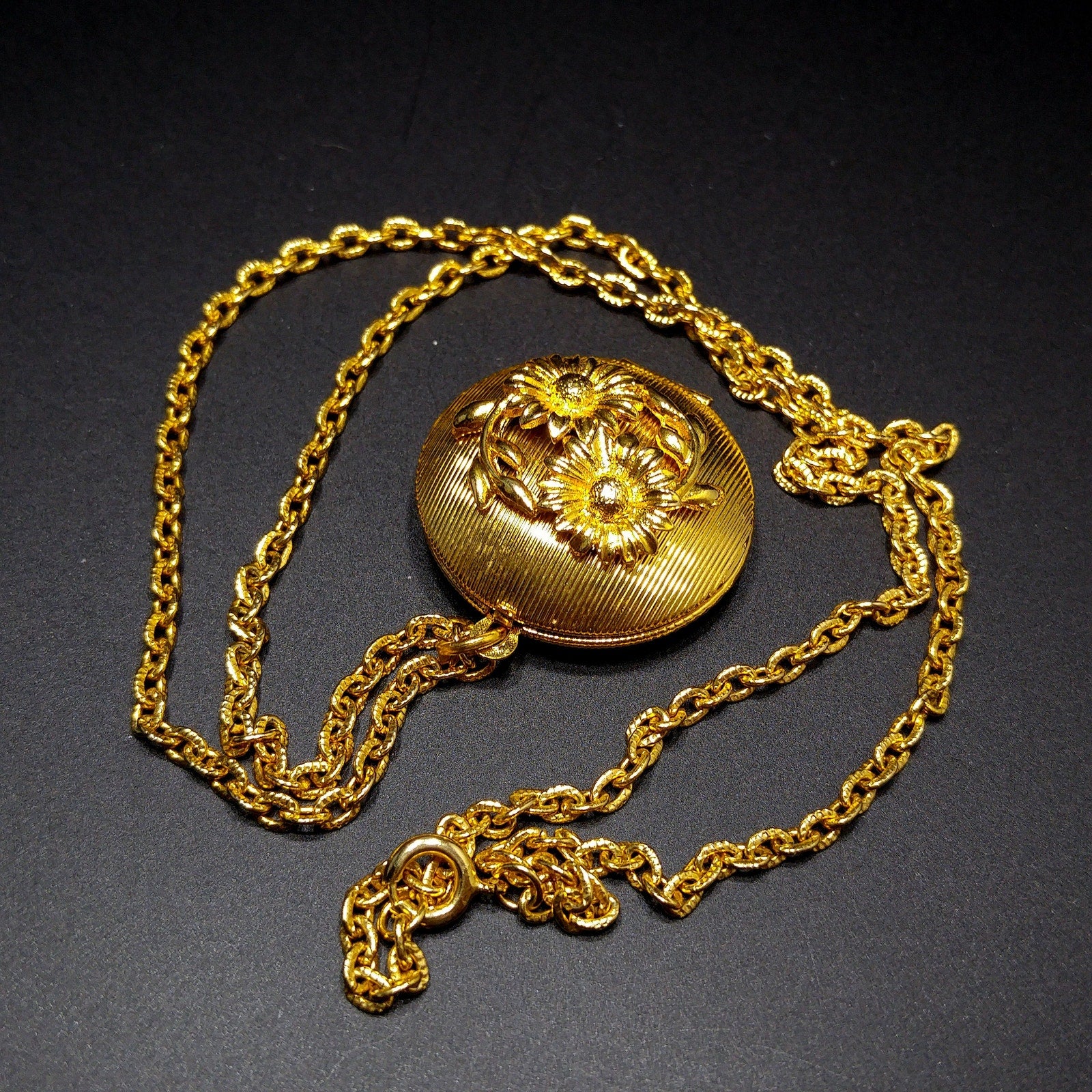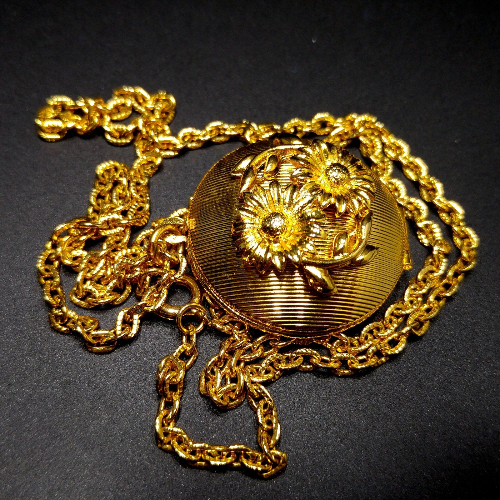 Vintage Perfume Floral Locket Necklace, Solid Perfume Inside, 1960s Vintage Jewelry