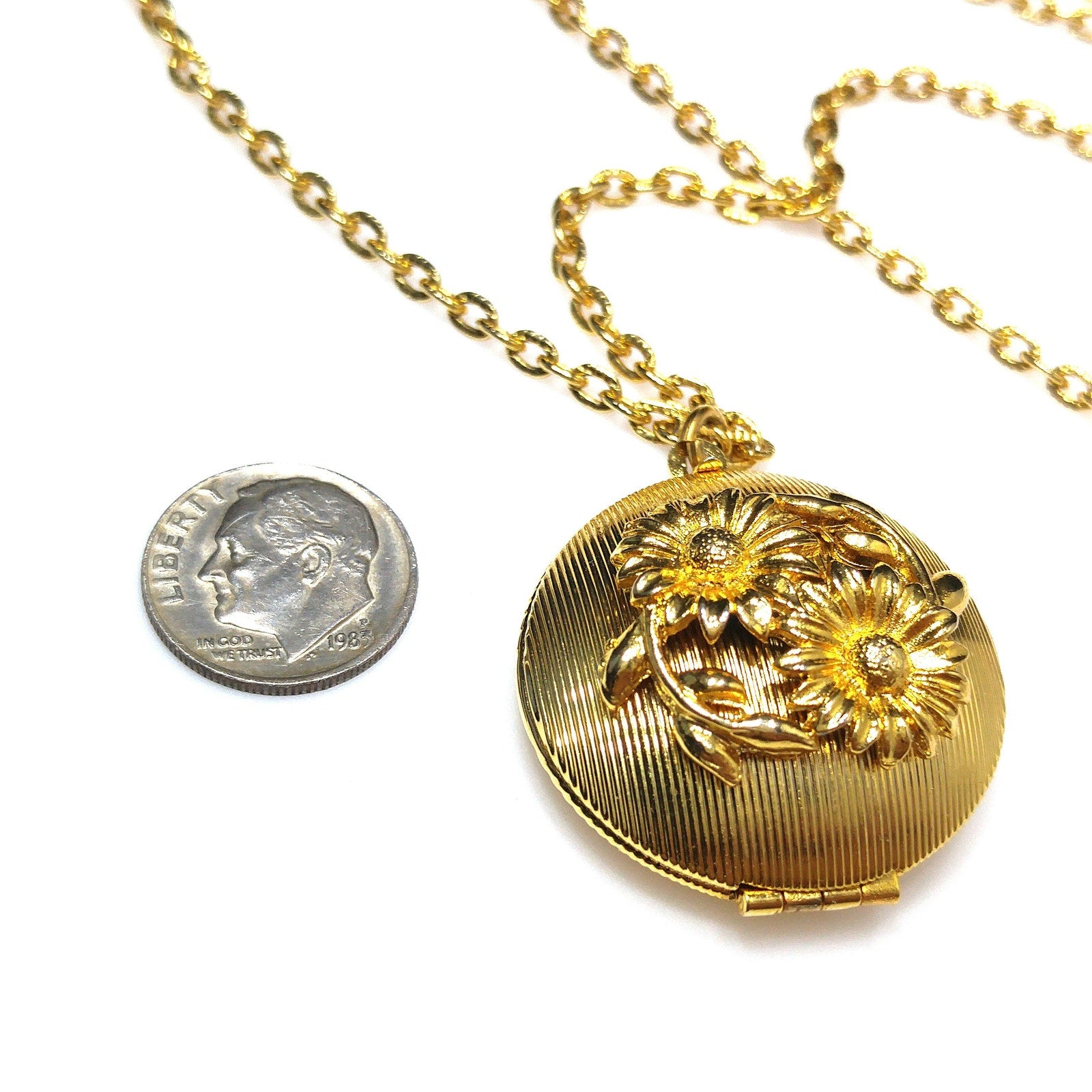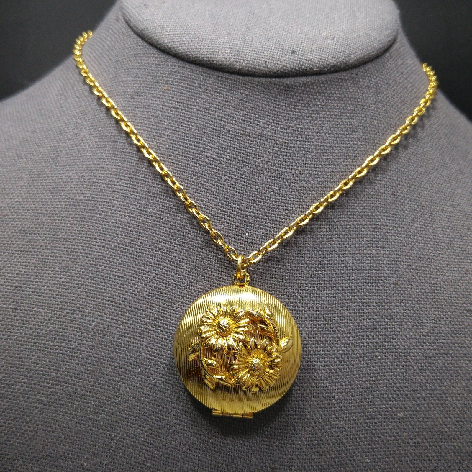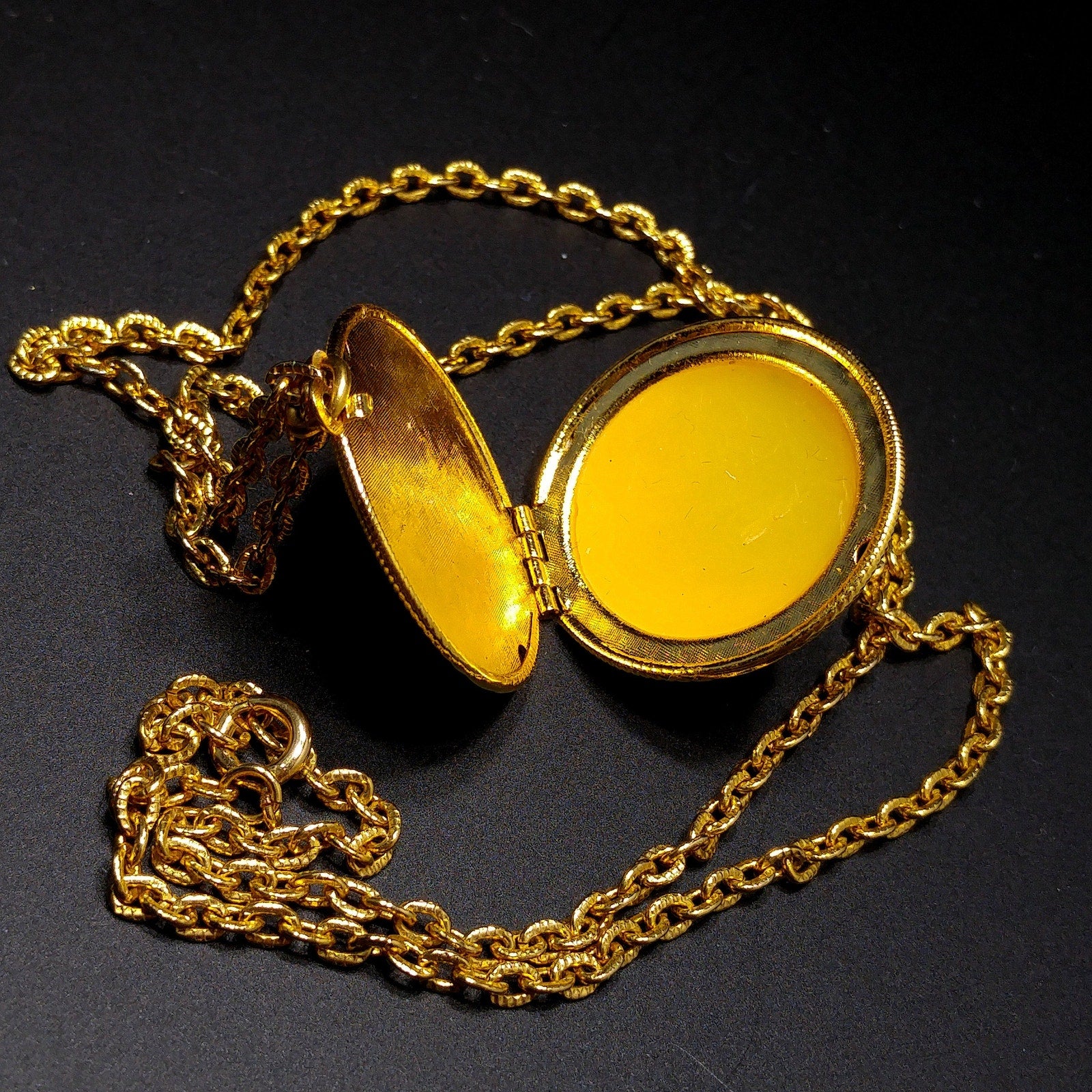 Vintage Perfume Floral Locket Necklace, Solid Perfume Inside, 1960s Vintage Jewelry
