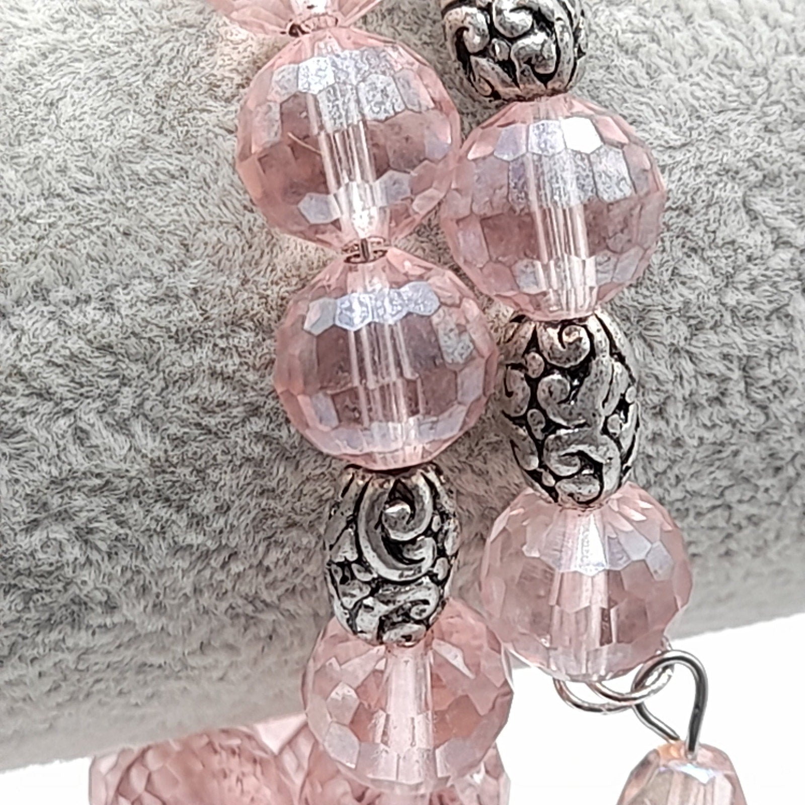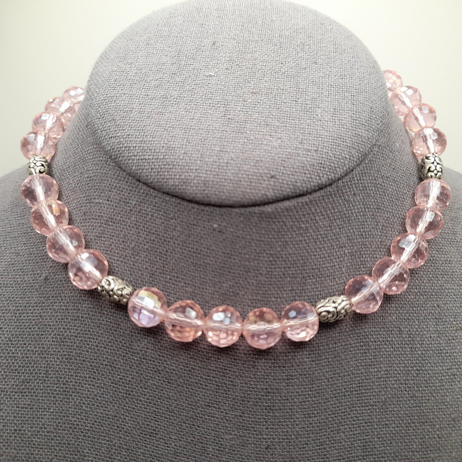 The delicate pink sparkle and timeless design make this piece ideal for both everyday elegance and special occasions. Whether worn layered with other vintage jewelry or styled on its own, it adds a touch of classic feminine charm.