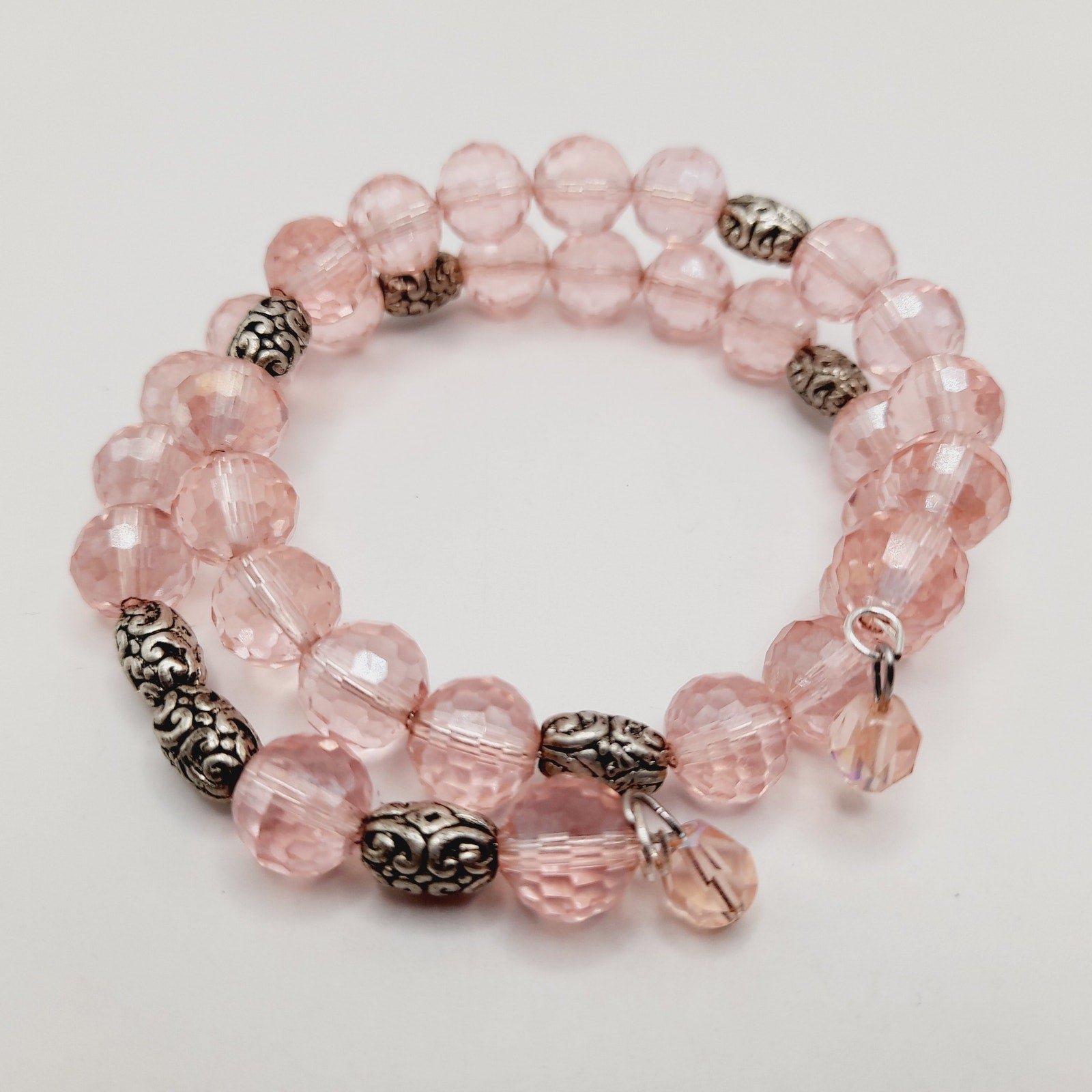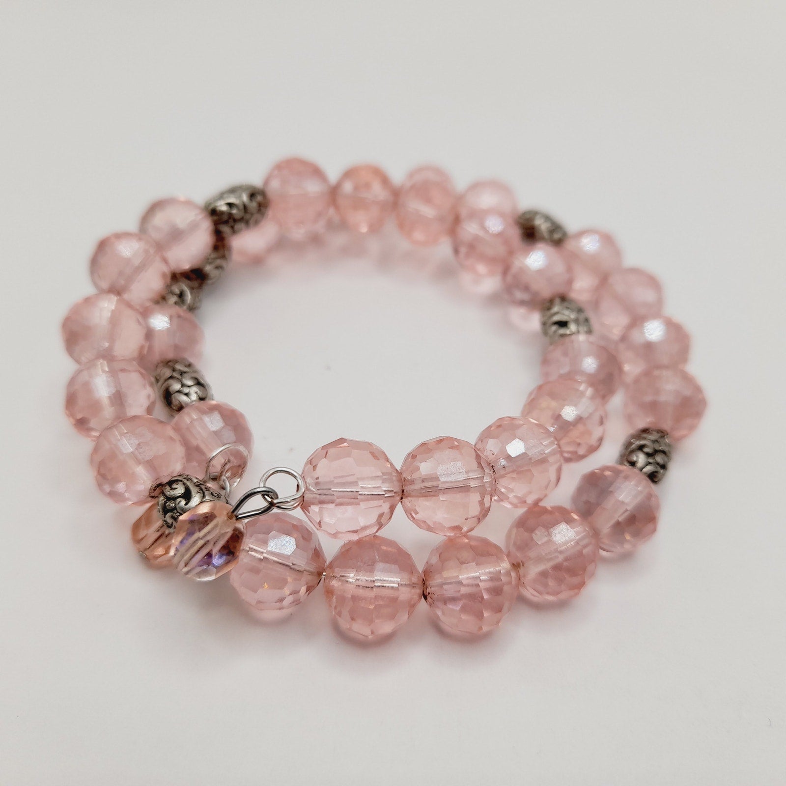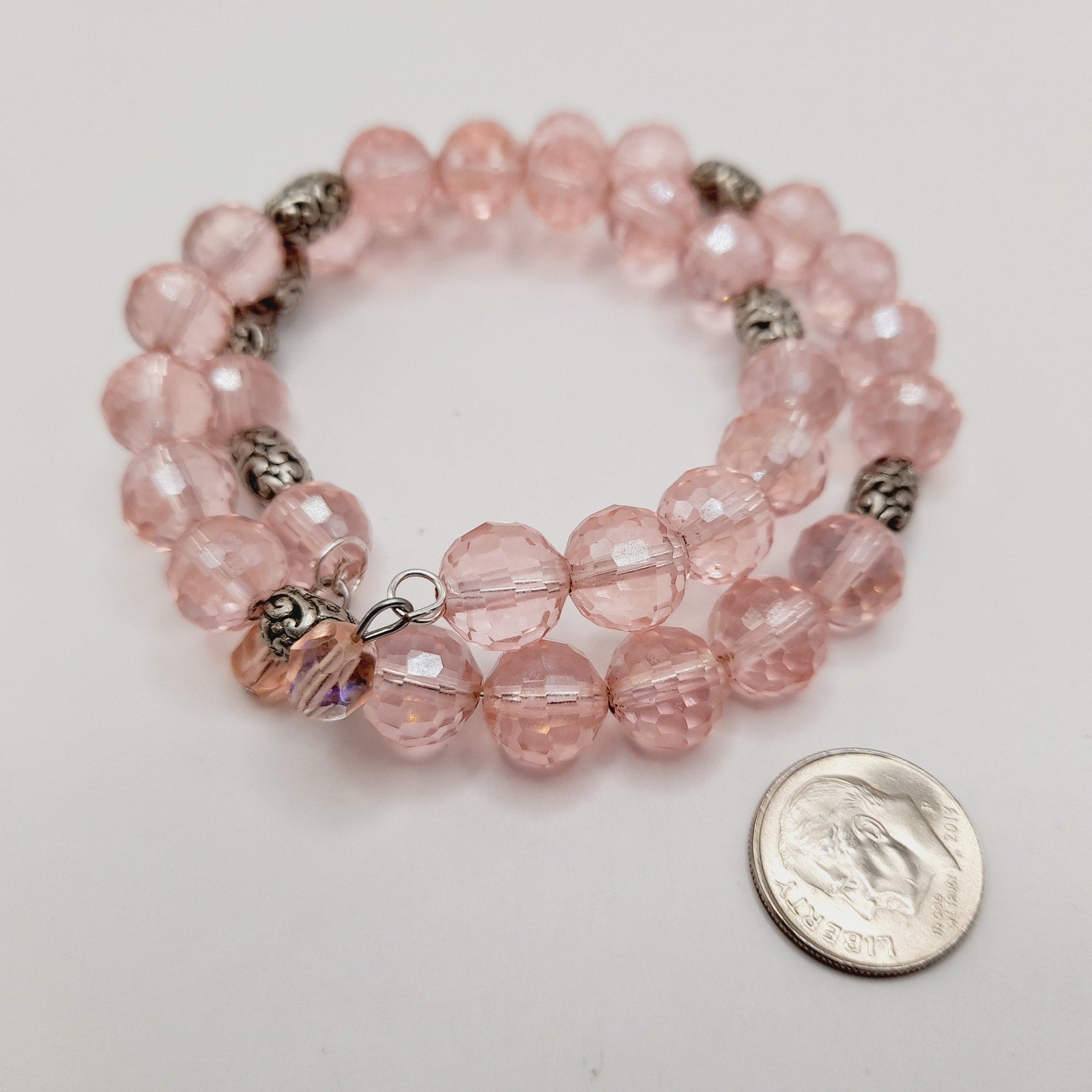 Vintage Pink Crystal Beaded Memory Wire Bracelet or Choker Necklace – 15 Inch Convertible Jewelry