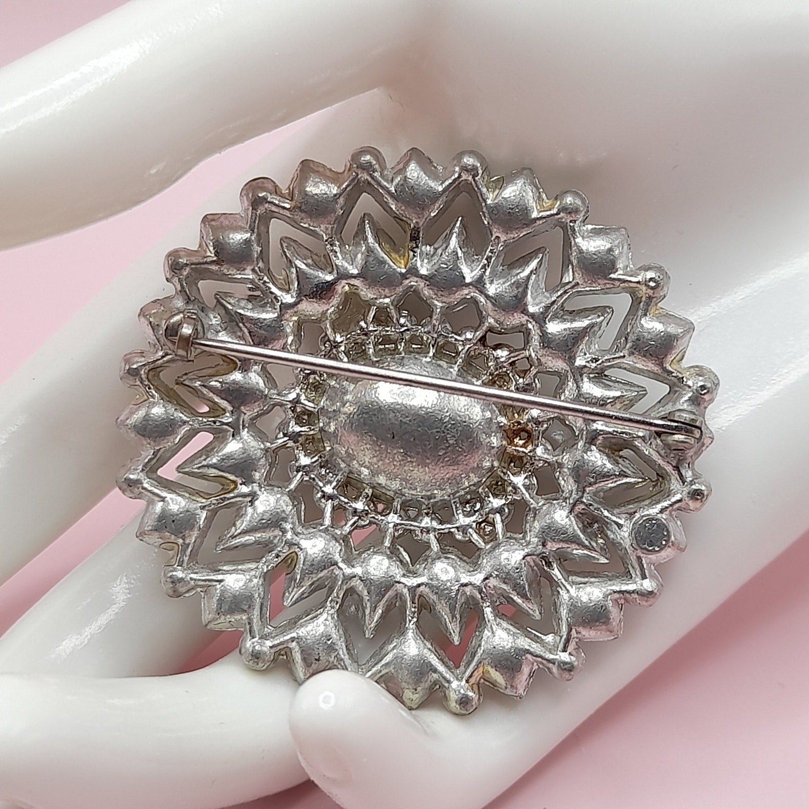 *Condition: Very good vintage condition. Several of the small rhinestones at the very edge are missing with the silver foil showing. I count 4. Will see signs of wear under magnification. See photos for details.
