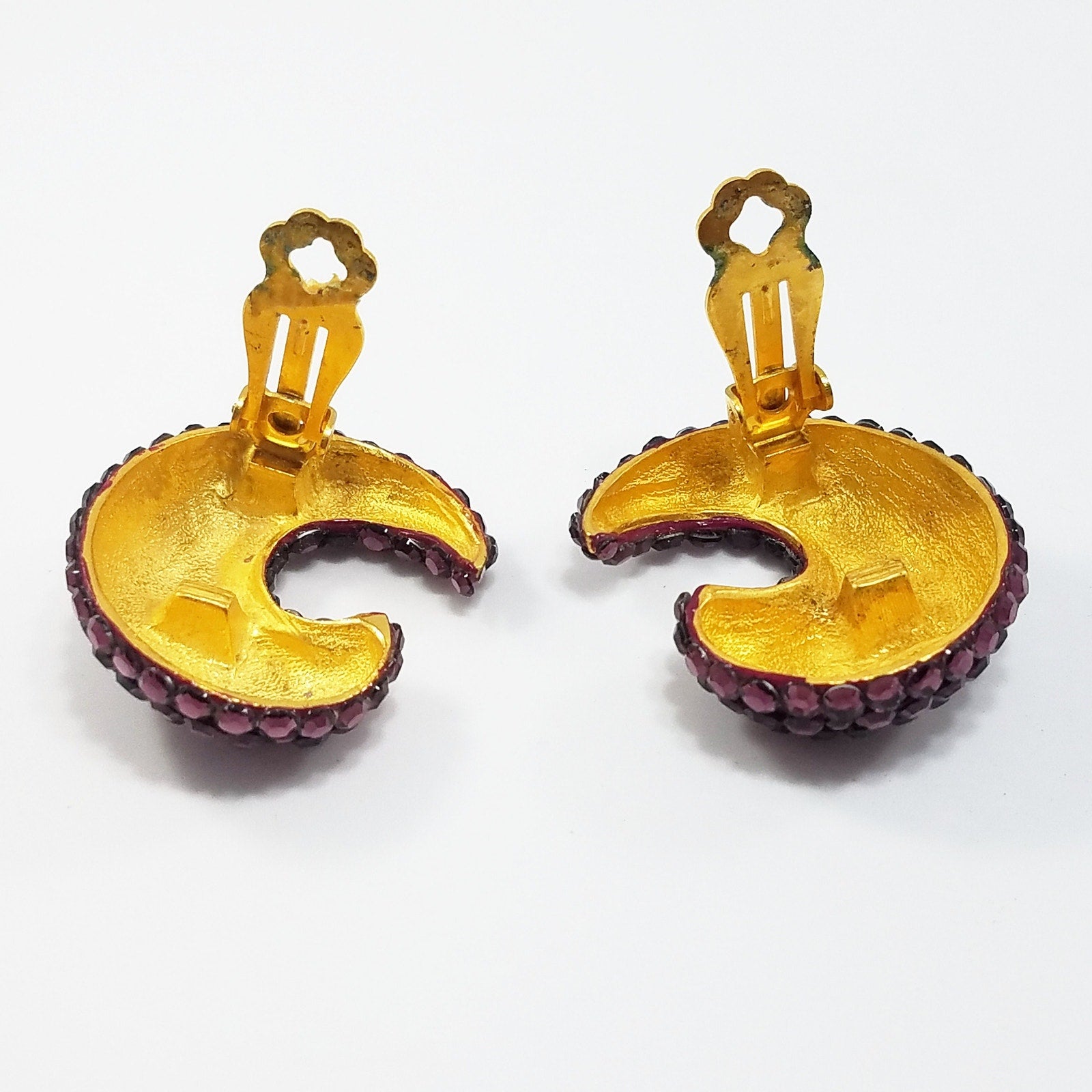 Vintage Richard Kerr Clip Earrings 1980s Encrusted Purple Swarovski Flat-Backs