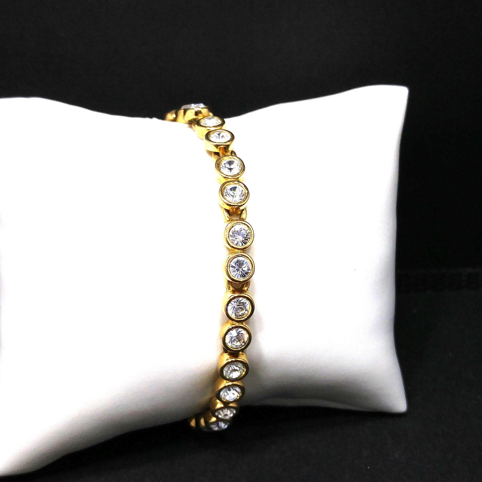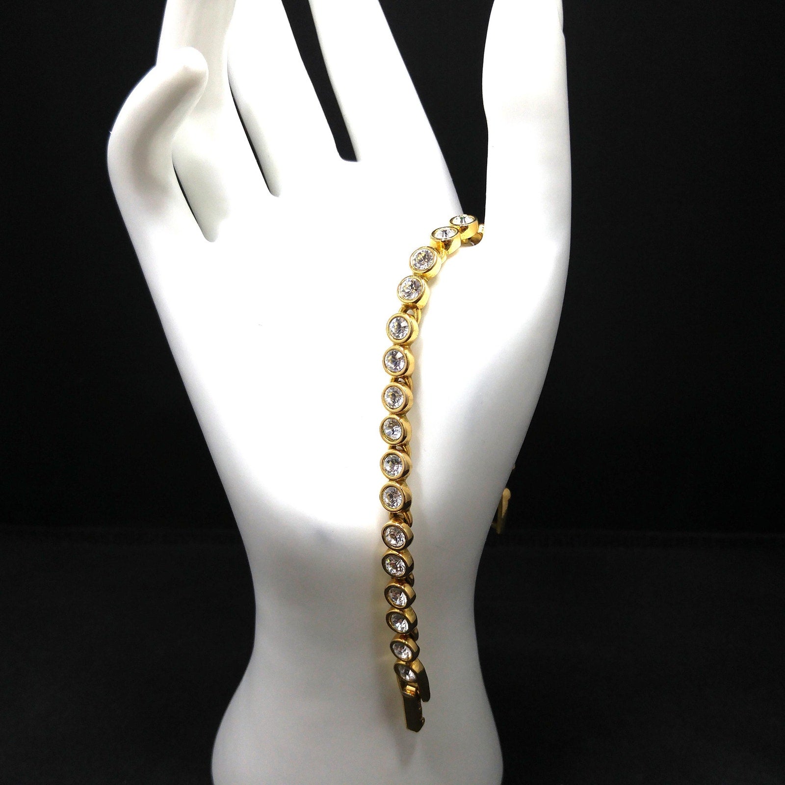Vintage Swarovski Bracelet – Clear Rhinestone Bezel Set – Gold Plated Link