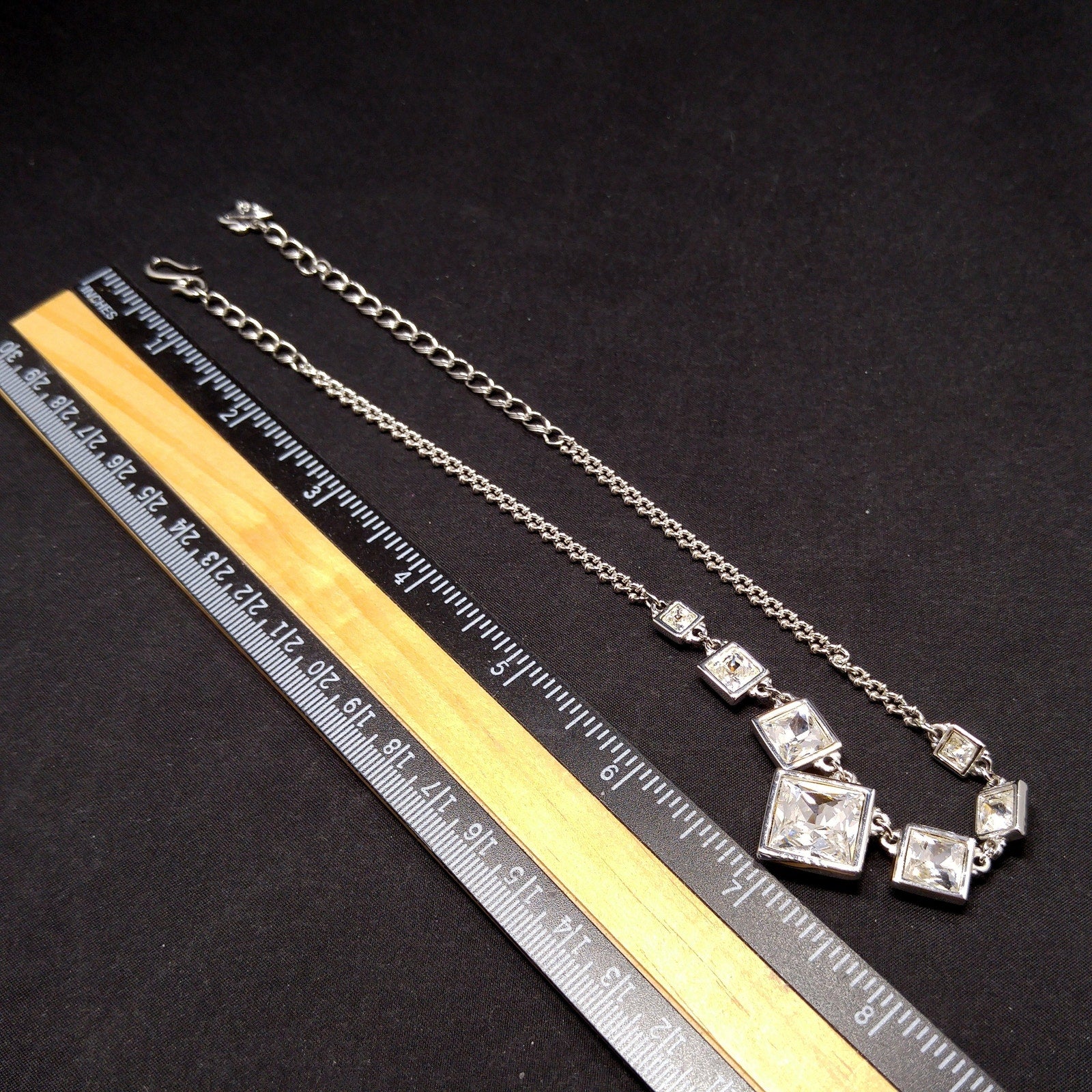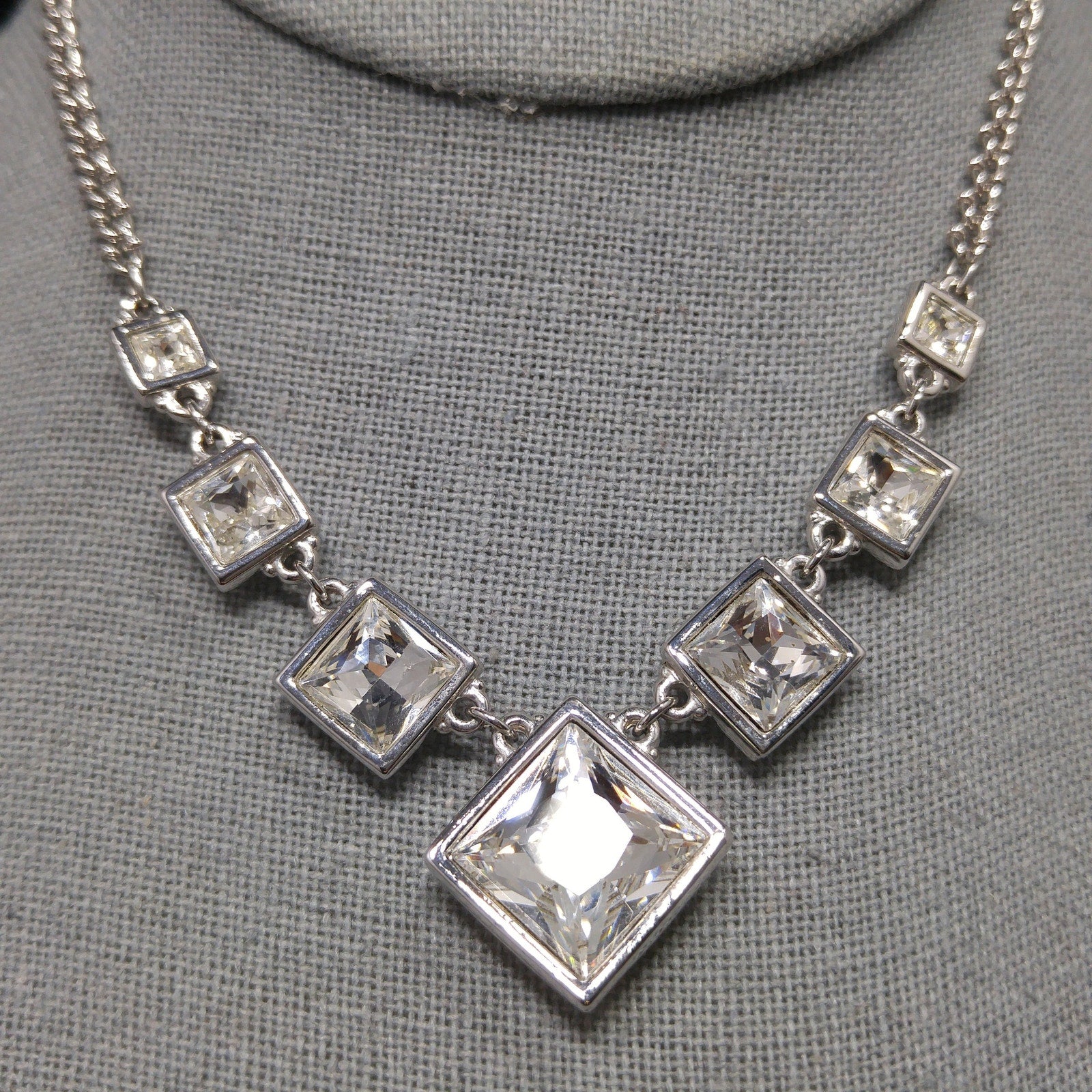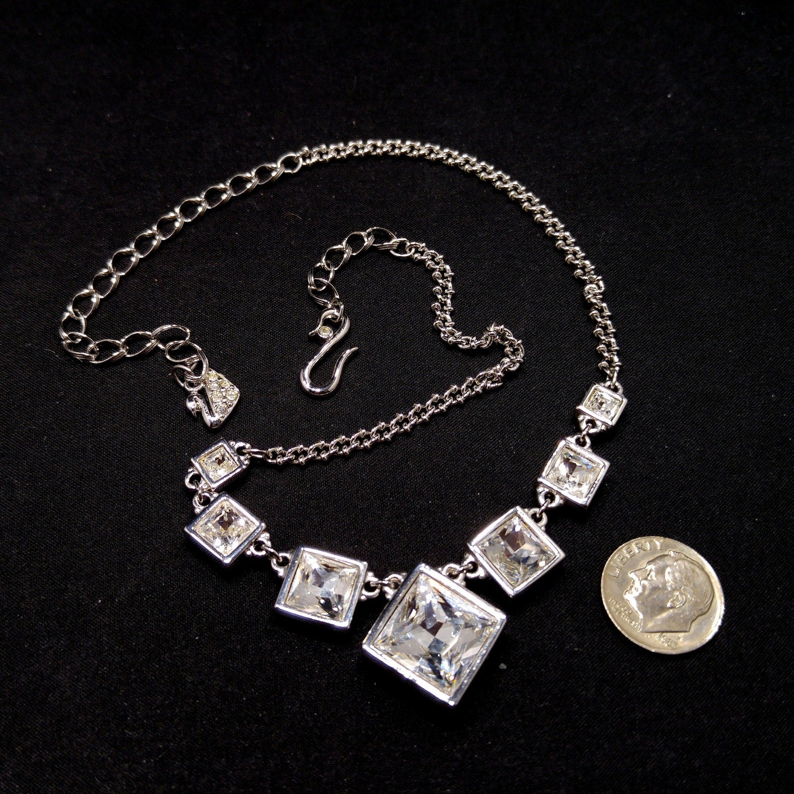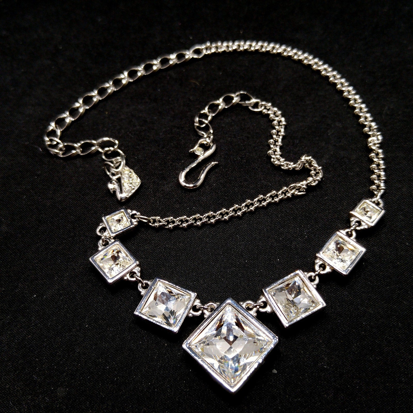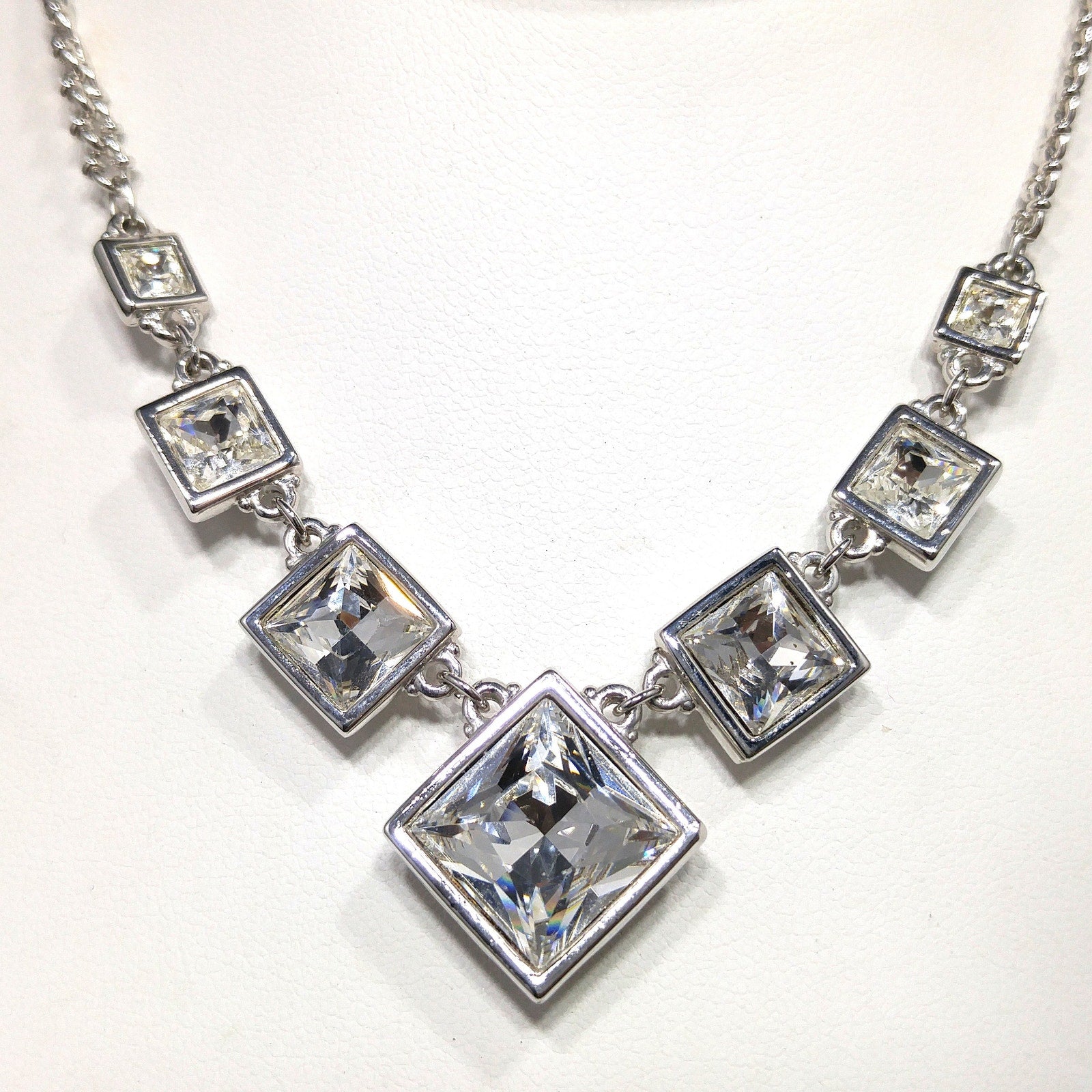 Vintage Swarovski Choker Necklace – Clear Crystal Squares, Rhodium Plated, 1990s