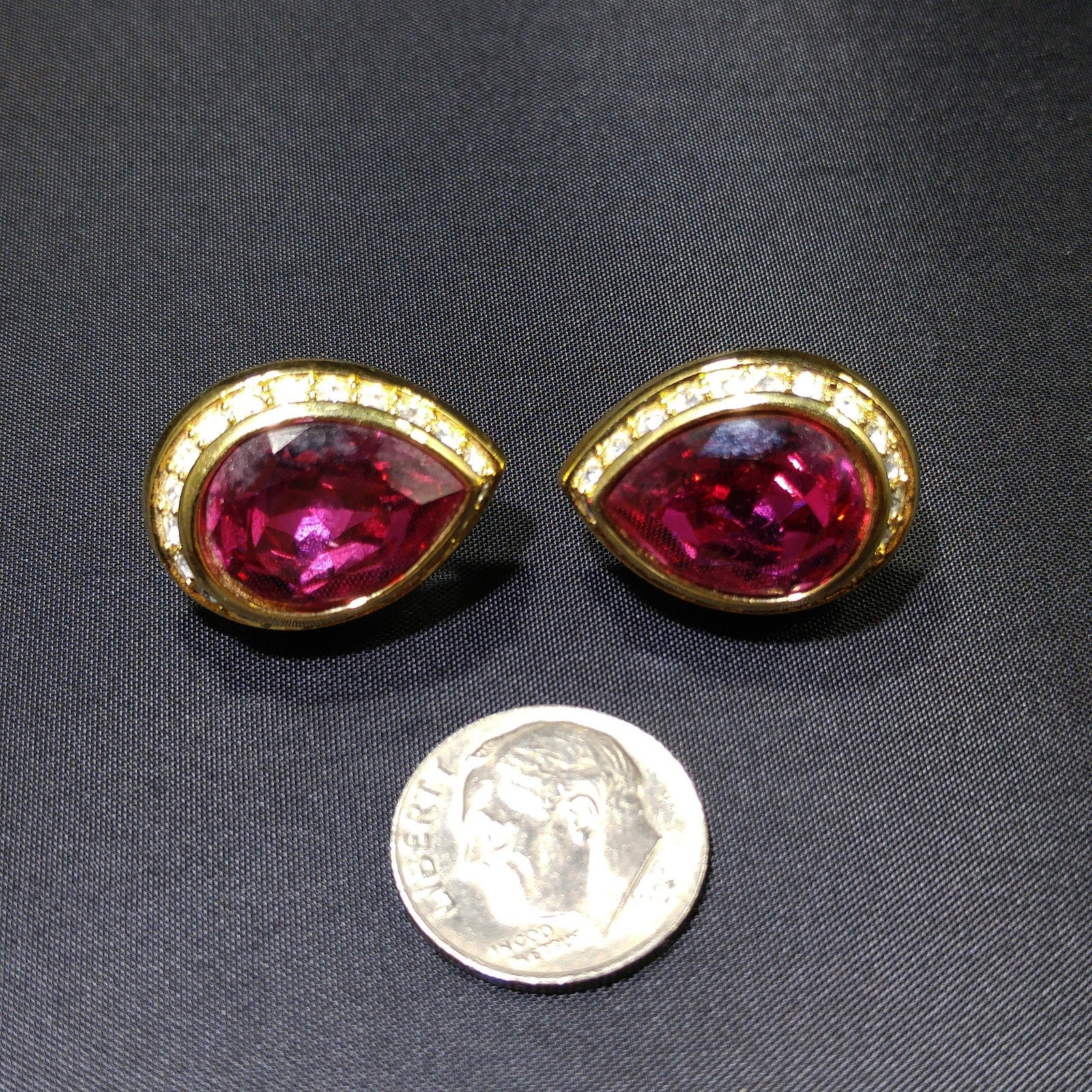Vintage Swarovski Pink Teardrop Crystal Earrings 1990s Gold Swan Logo Signed