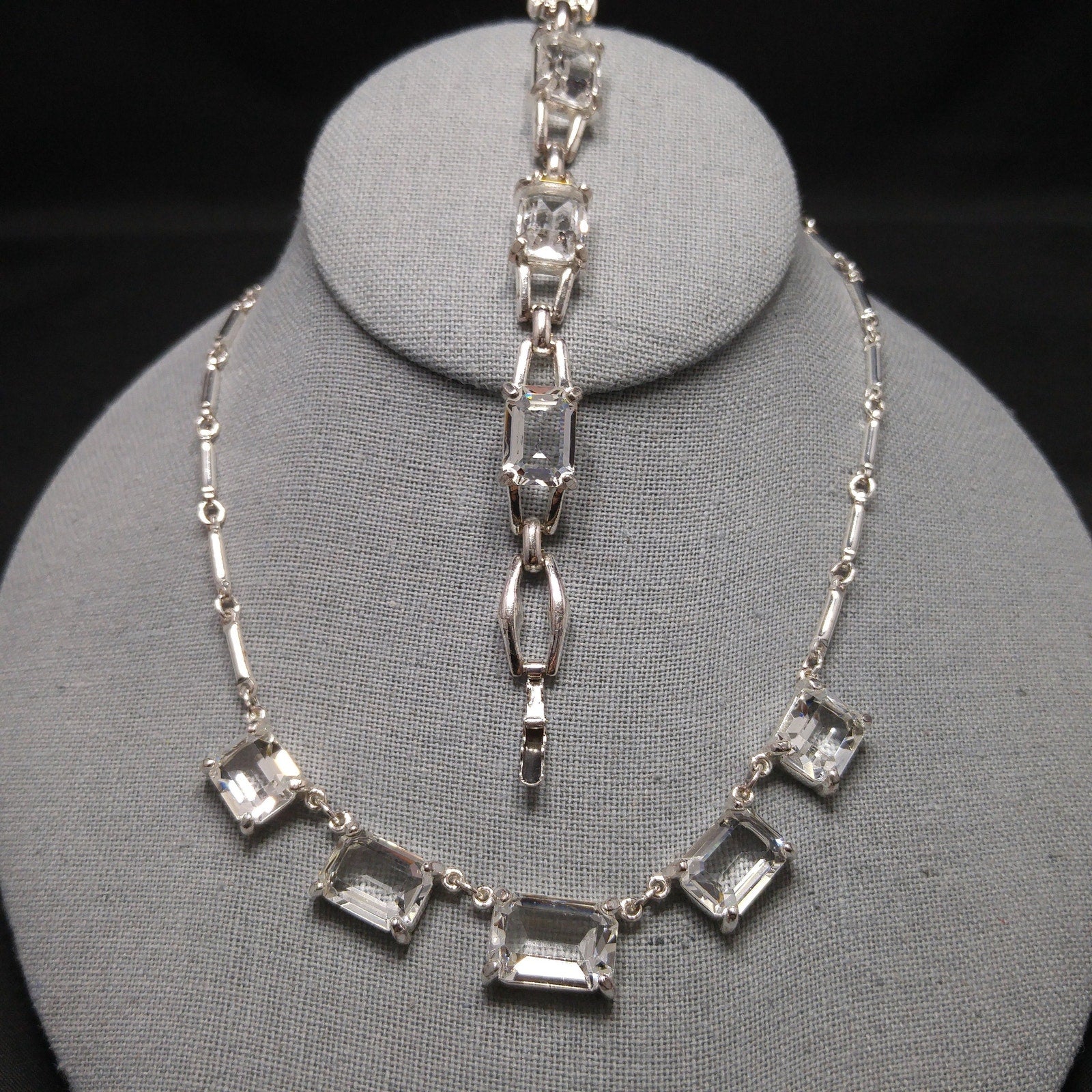 Vintage Swarovski Swan Logo Emerald Cut Crystal Necklace & Bracelet Set 1990s