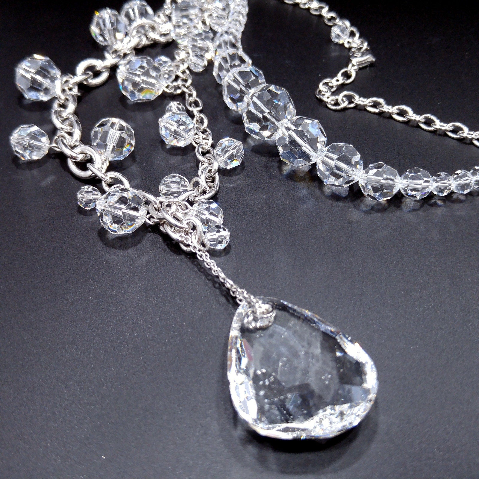 Vintage Swarovski Swan Logo Long Crystal Necklace Teardrop Pendant 1990s