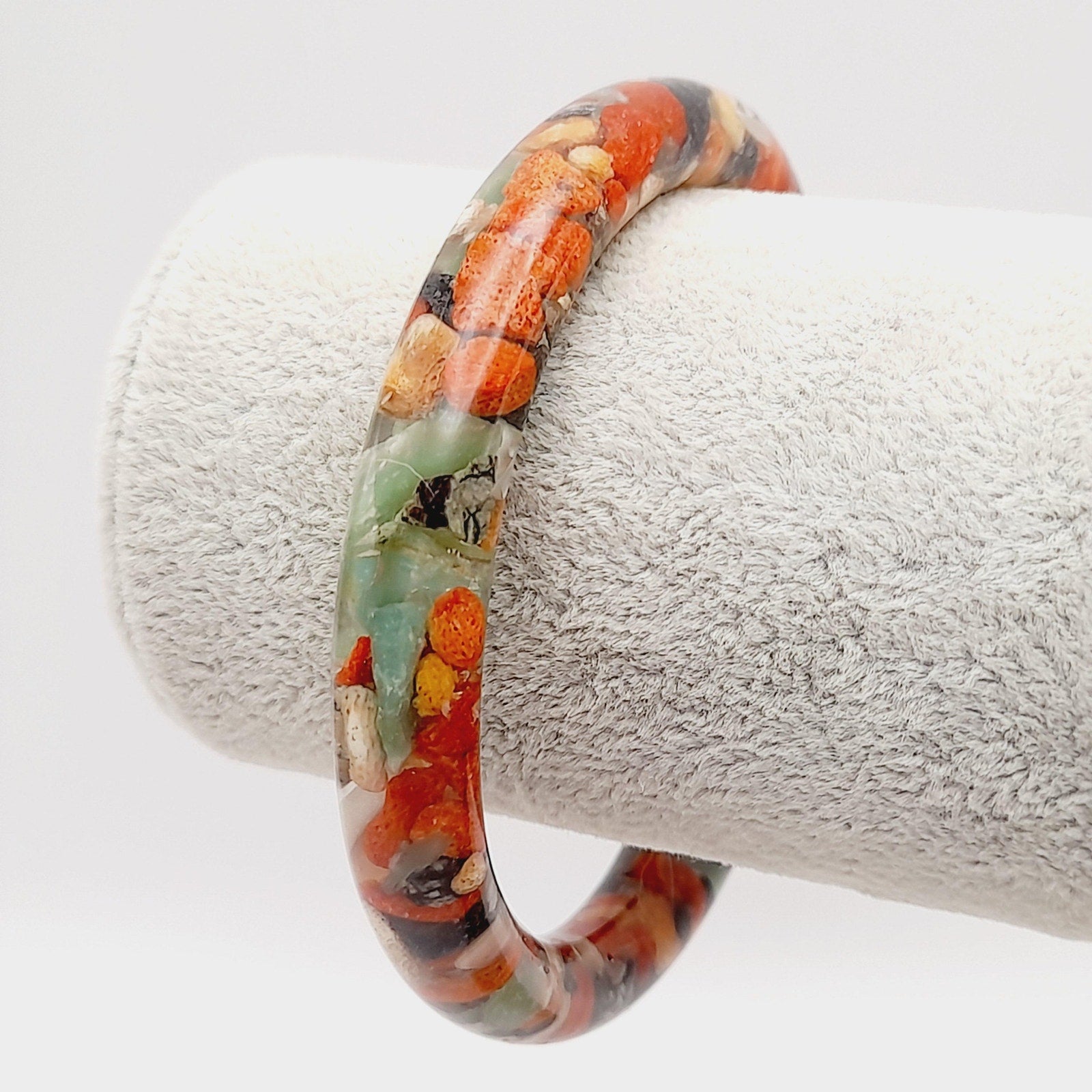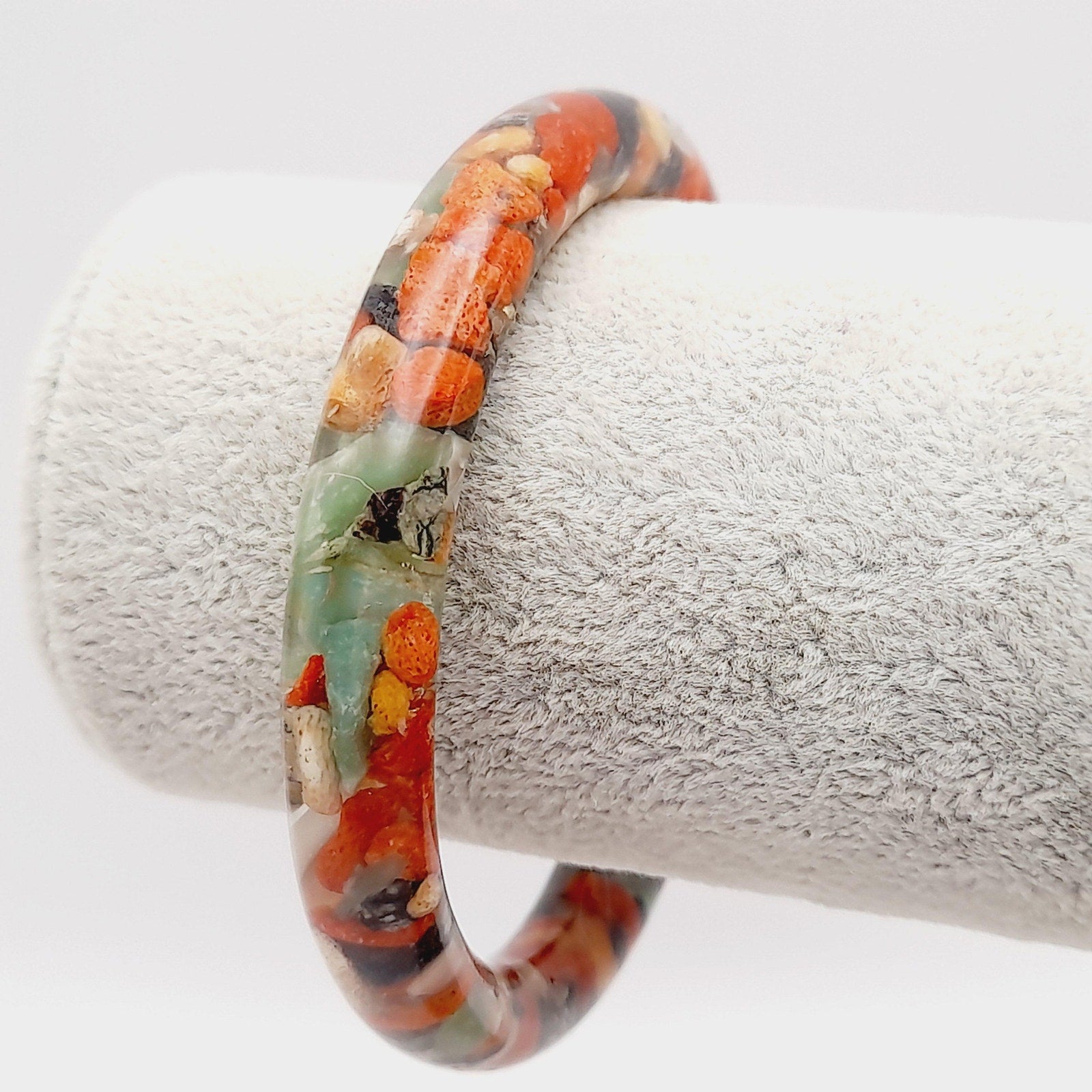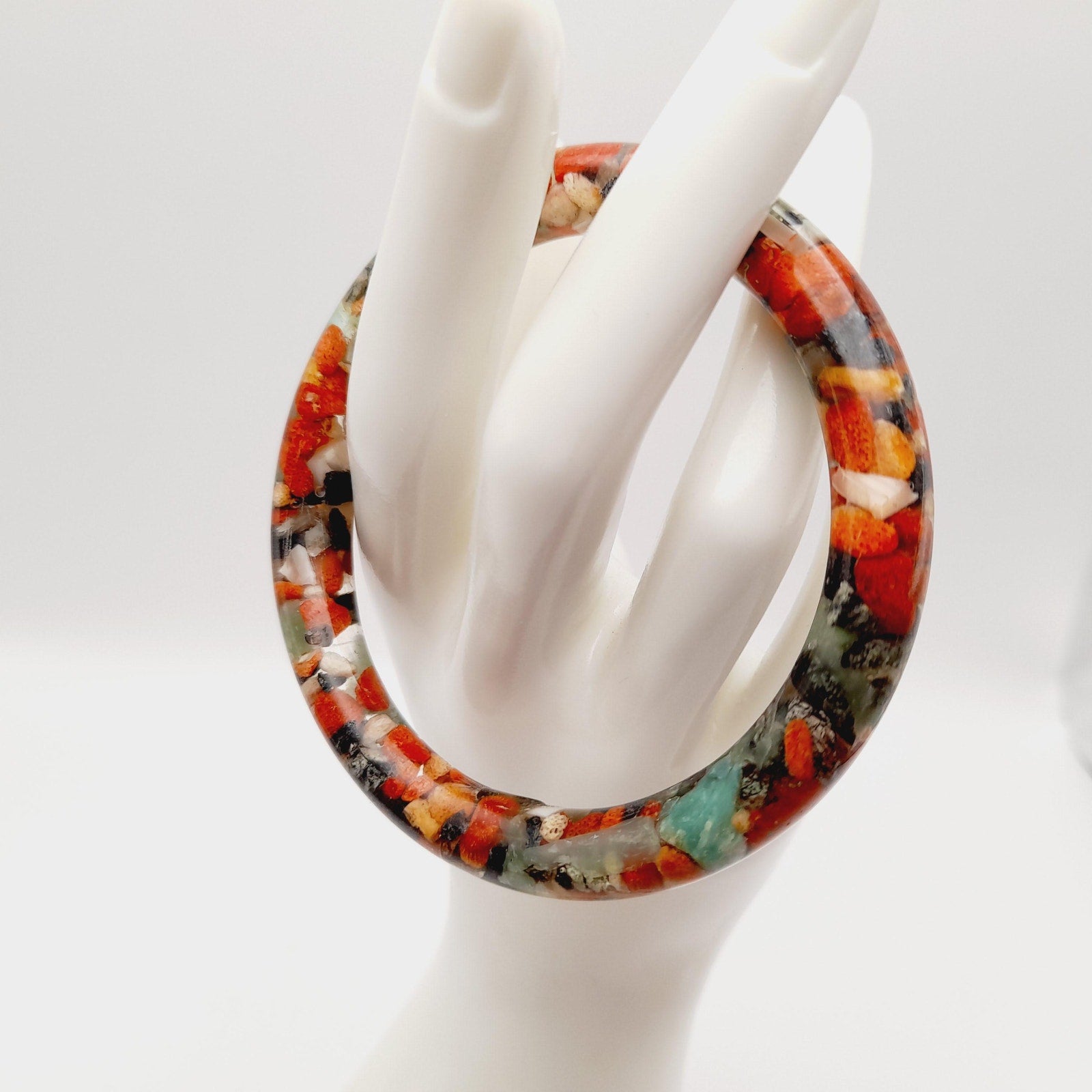 Vintage Transparent Resin Bangle Bracelet Filled With Rock Chips