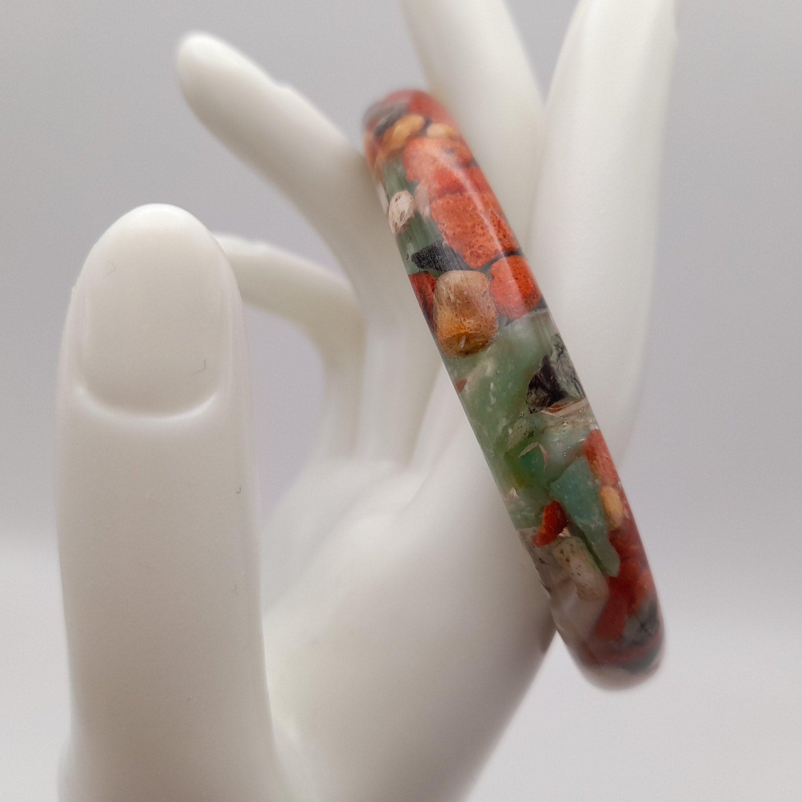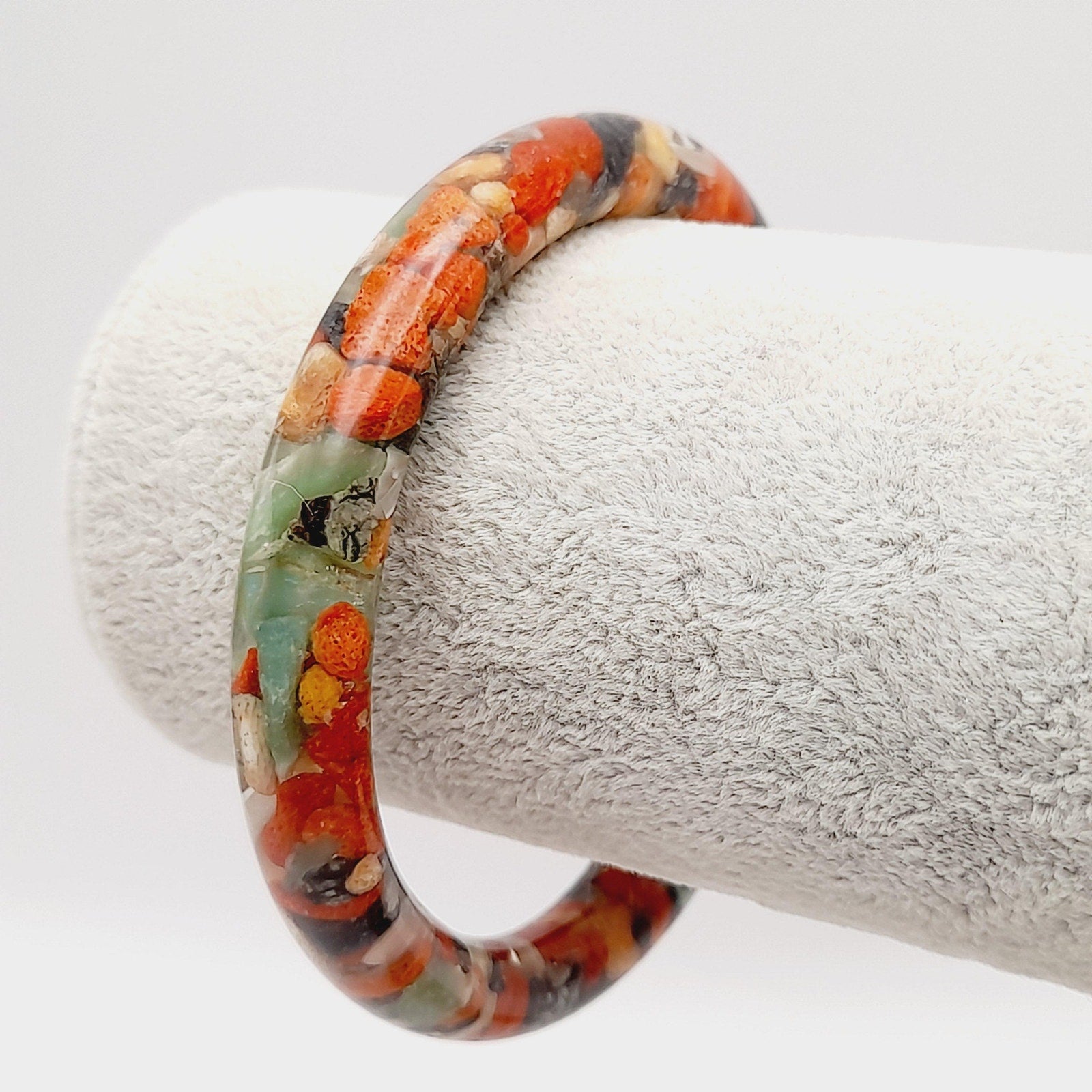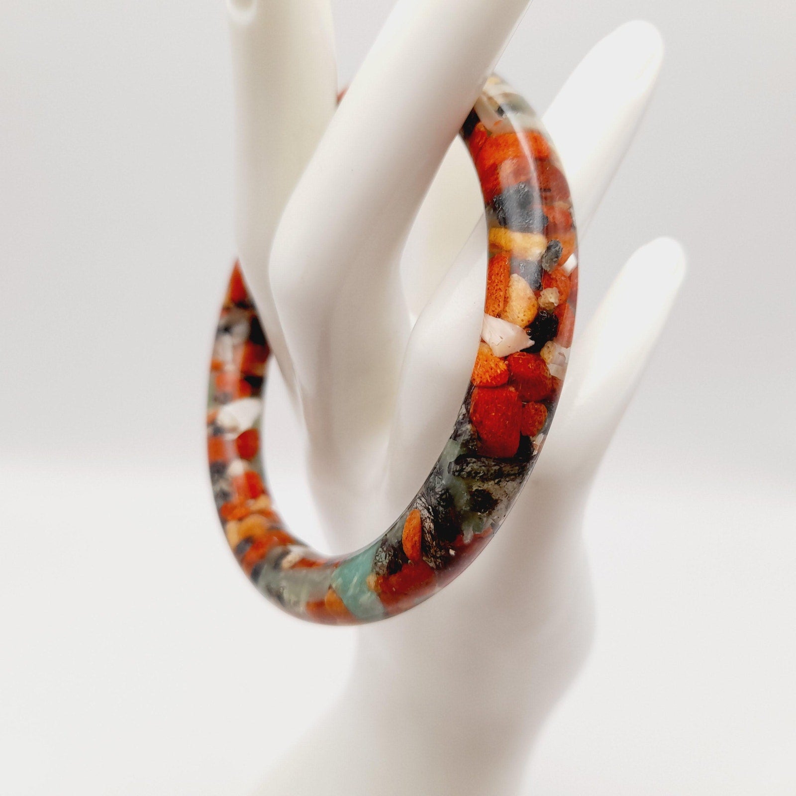 Vintage Transparent Resin Bangle Bracelet Filled With Rock Chips