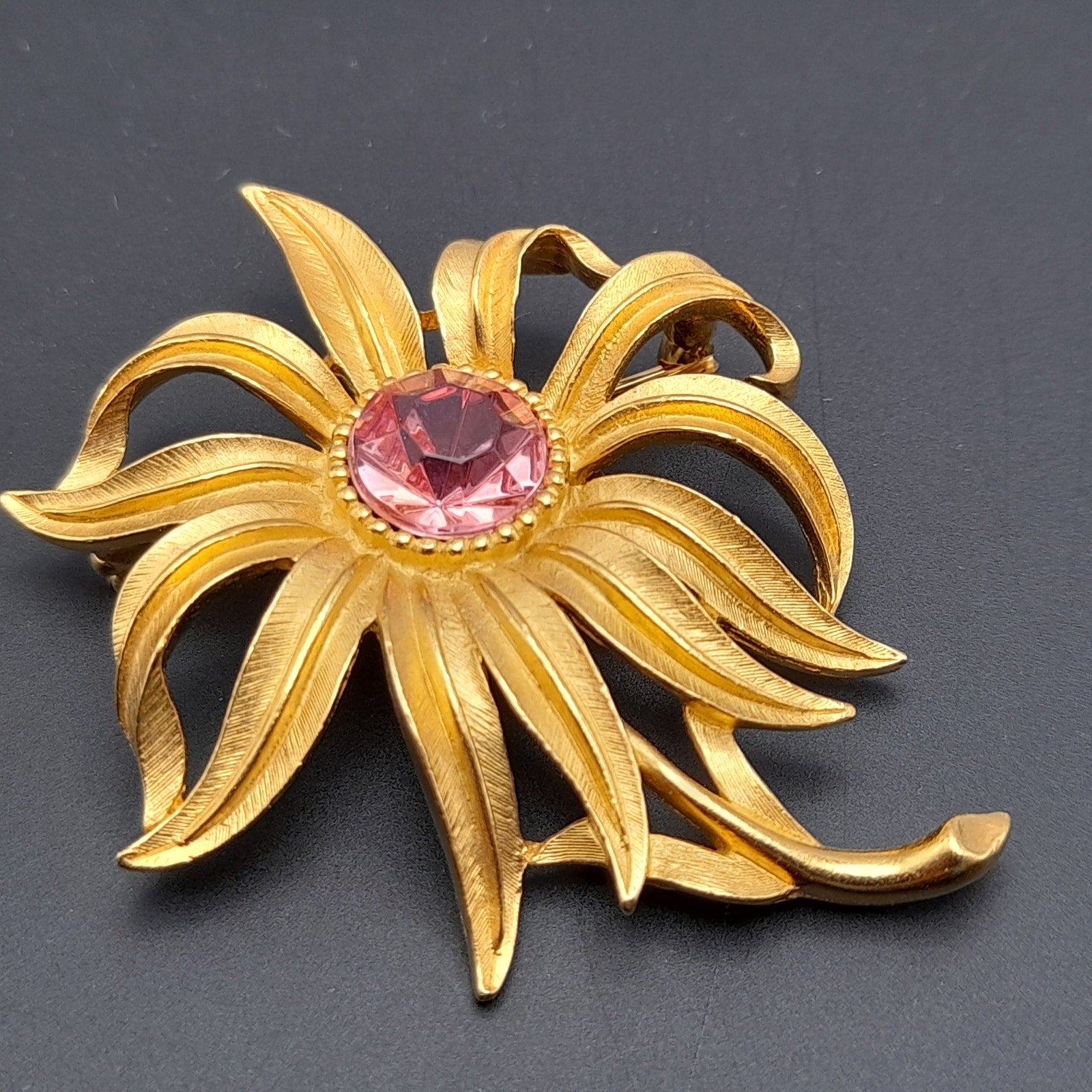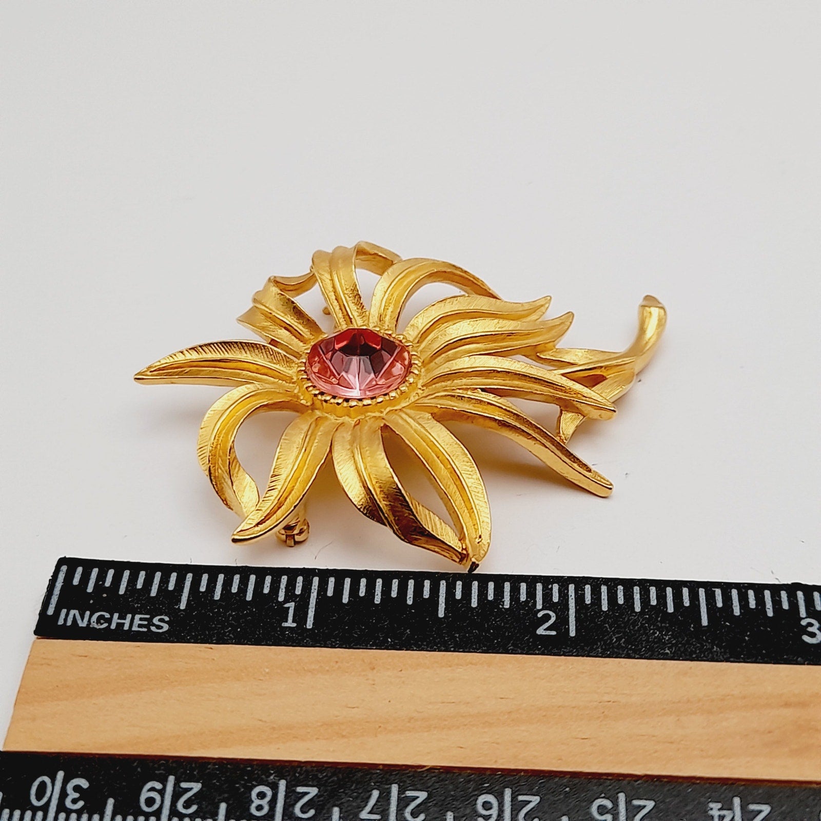 Vintage Trifari™ Flower Brooch with Pink Rhinestone Center