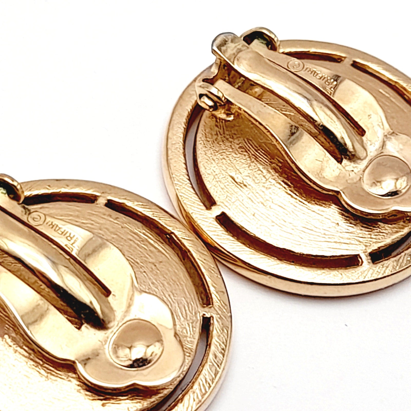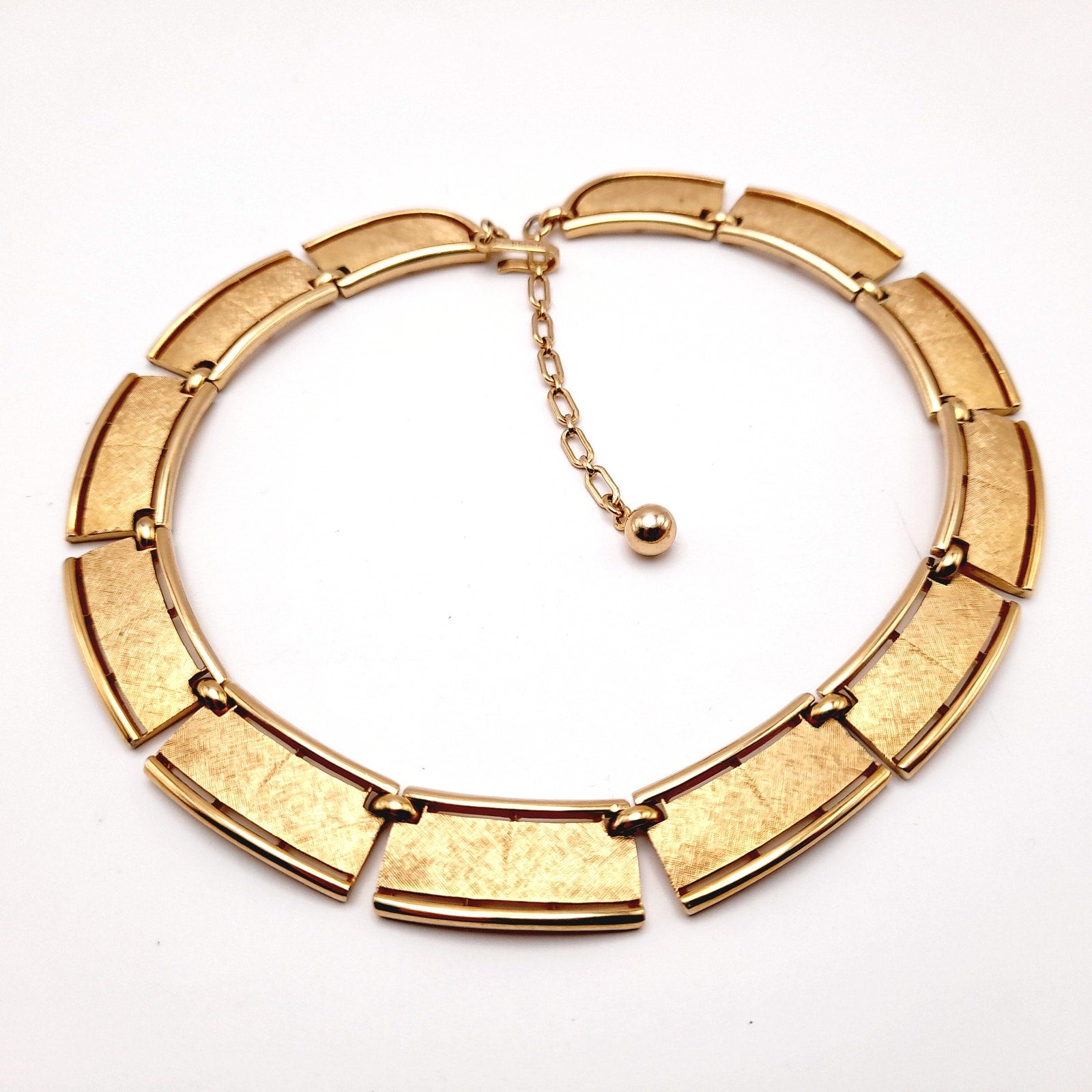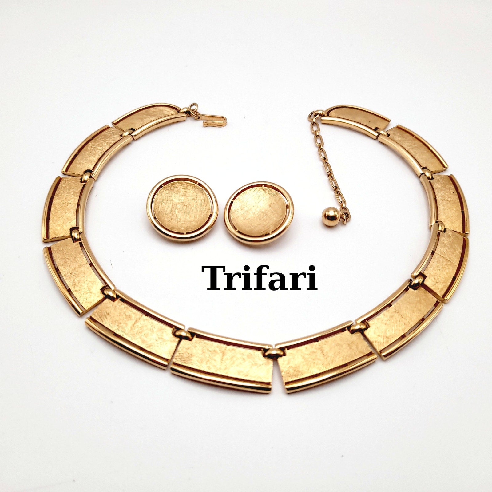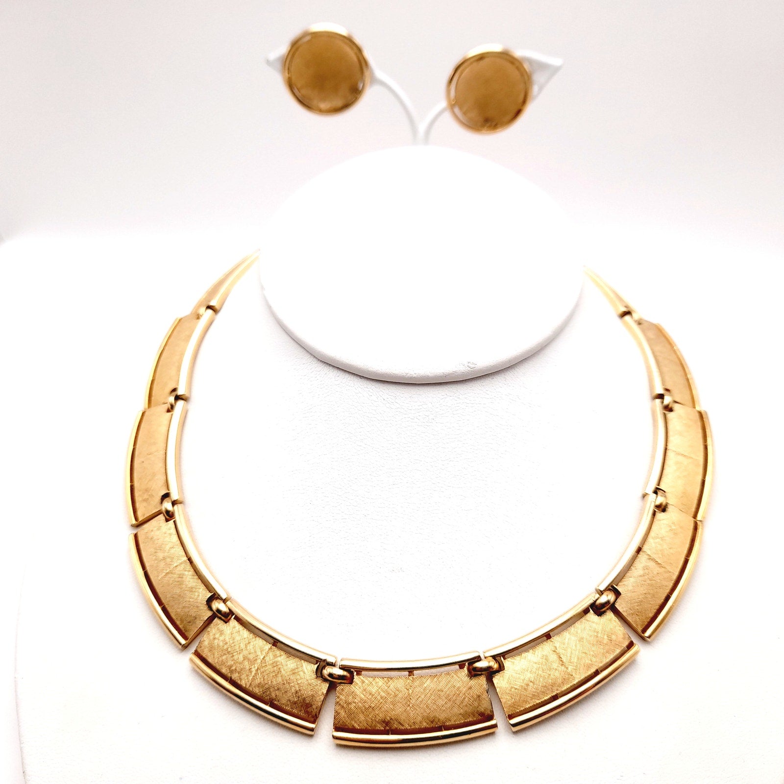 Vintage Trifari Satin Finish Gold Plated Choker Clip Earrings Set