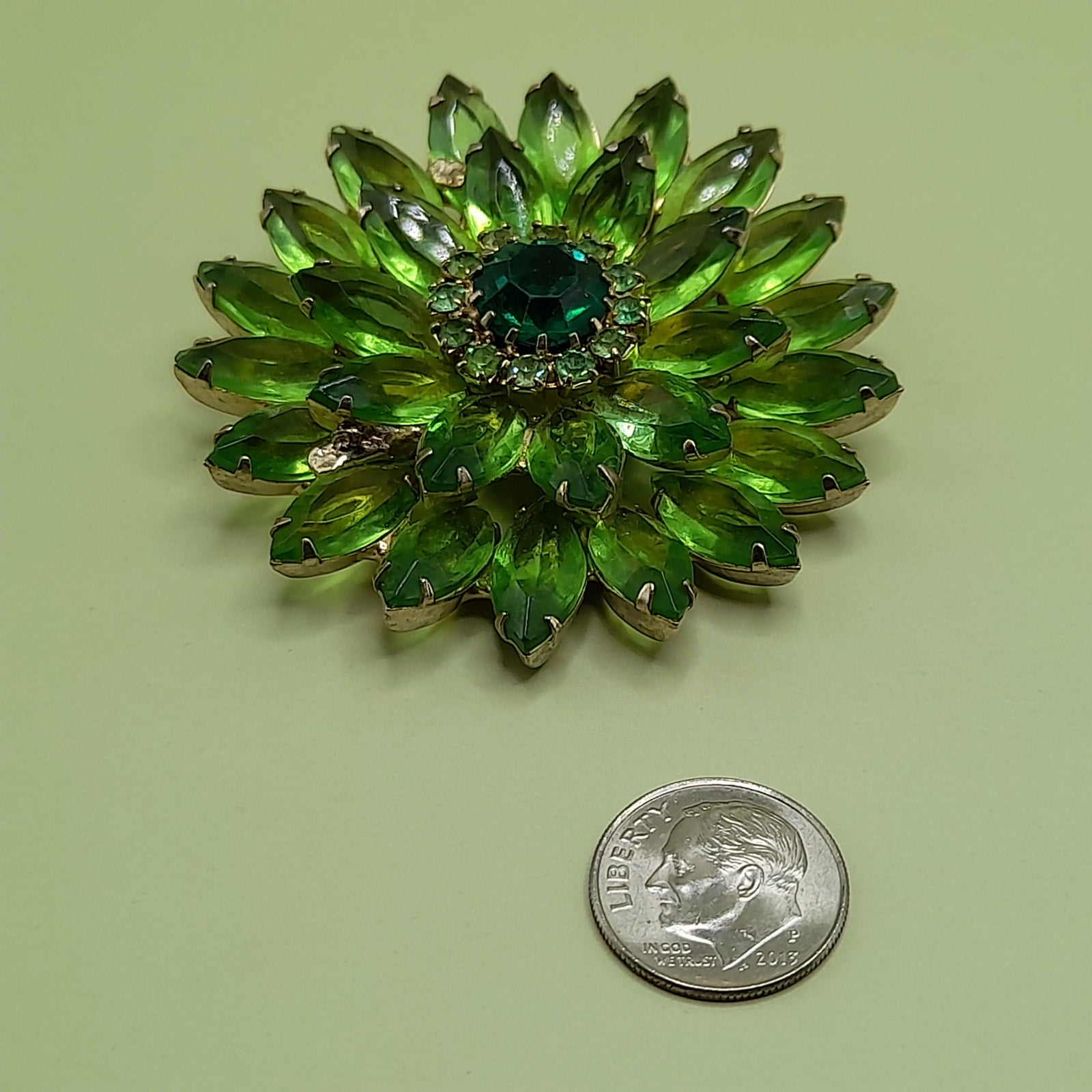 Vintage Unsigned Weiss Green Floral Brooch, 2 1/4 Inch