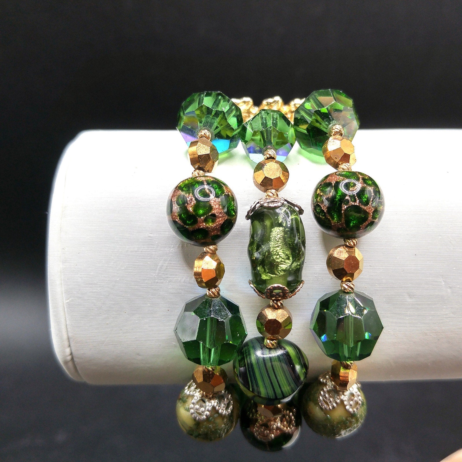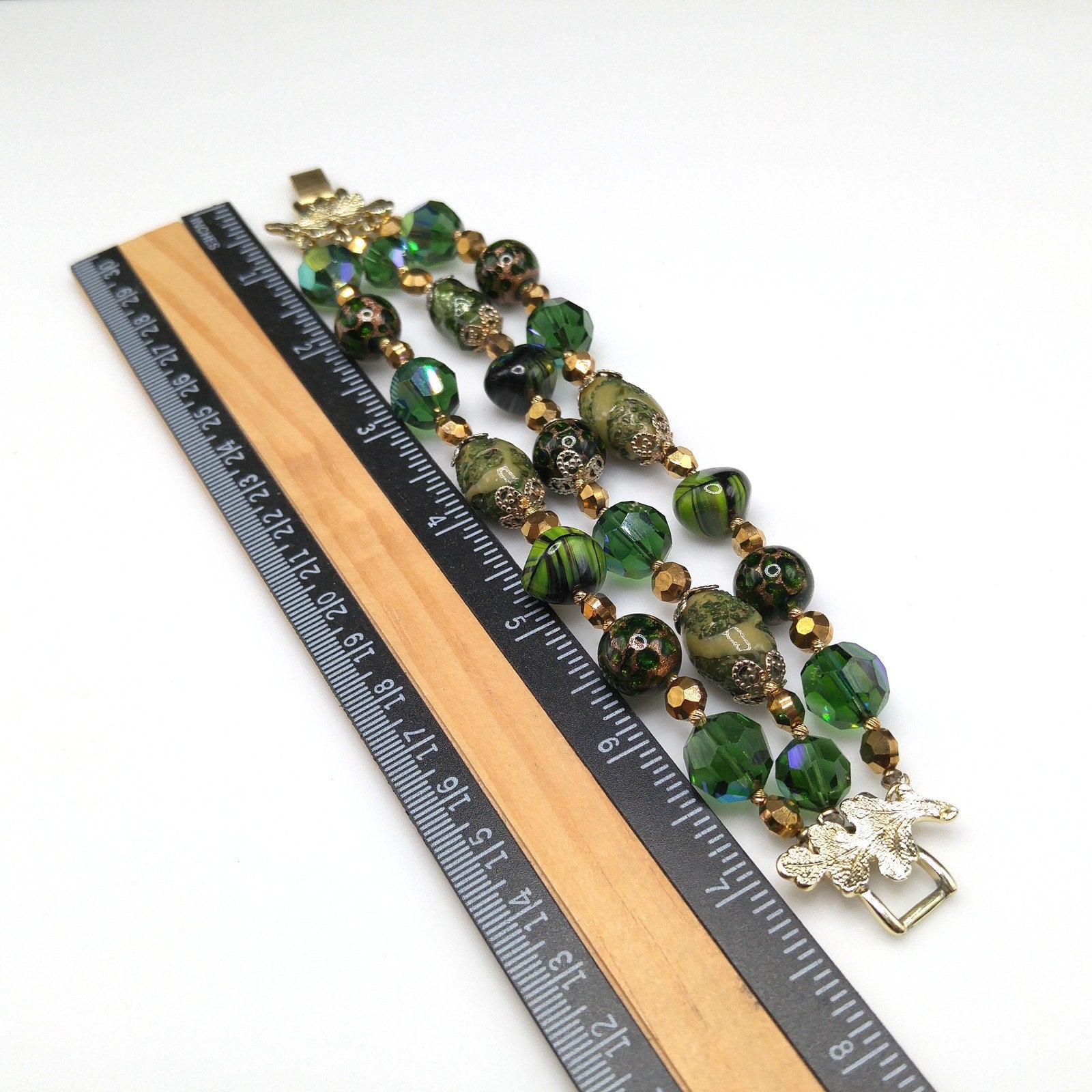 Vintage Vendome Green Crystal Art Bead Bracelet, Three Strands, 1960s