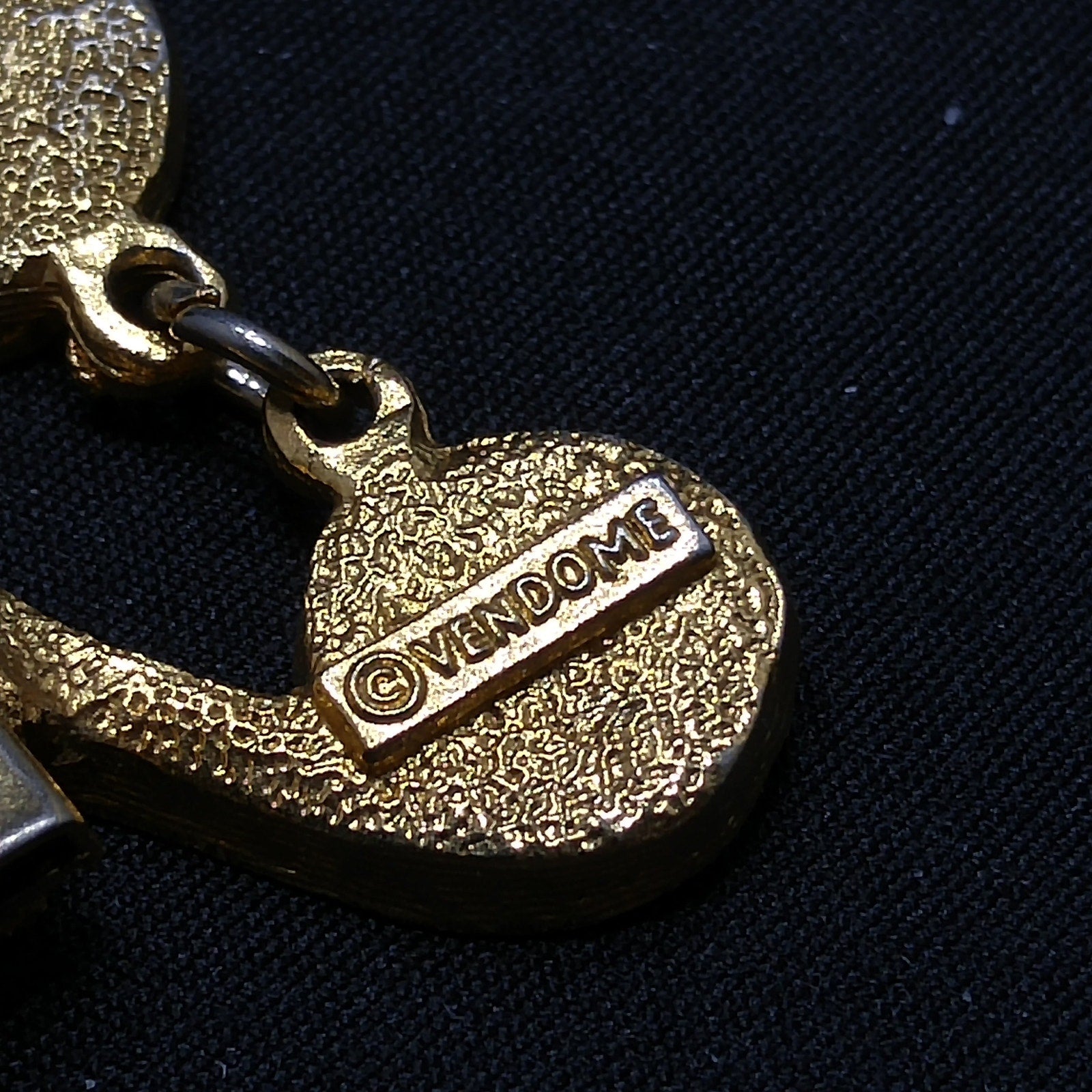 A standout feature of this piece is its hidden box clasp, seamlessly integrated into the design so the bracelet appears continuous when worn—an engineering detail seen only on higher-end Vendome creations. The bracelet is stamped VENDOME on the reverse near the clasp.