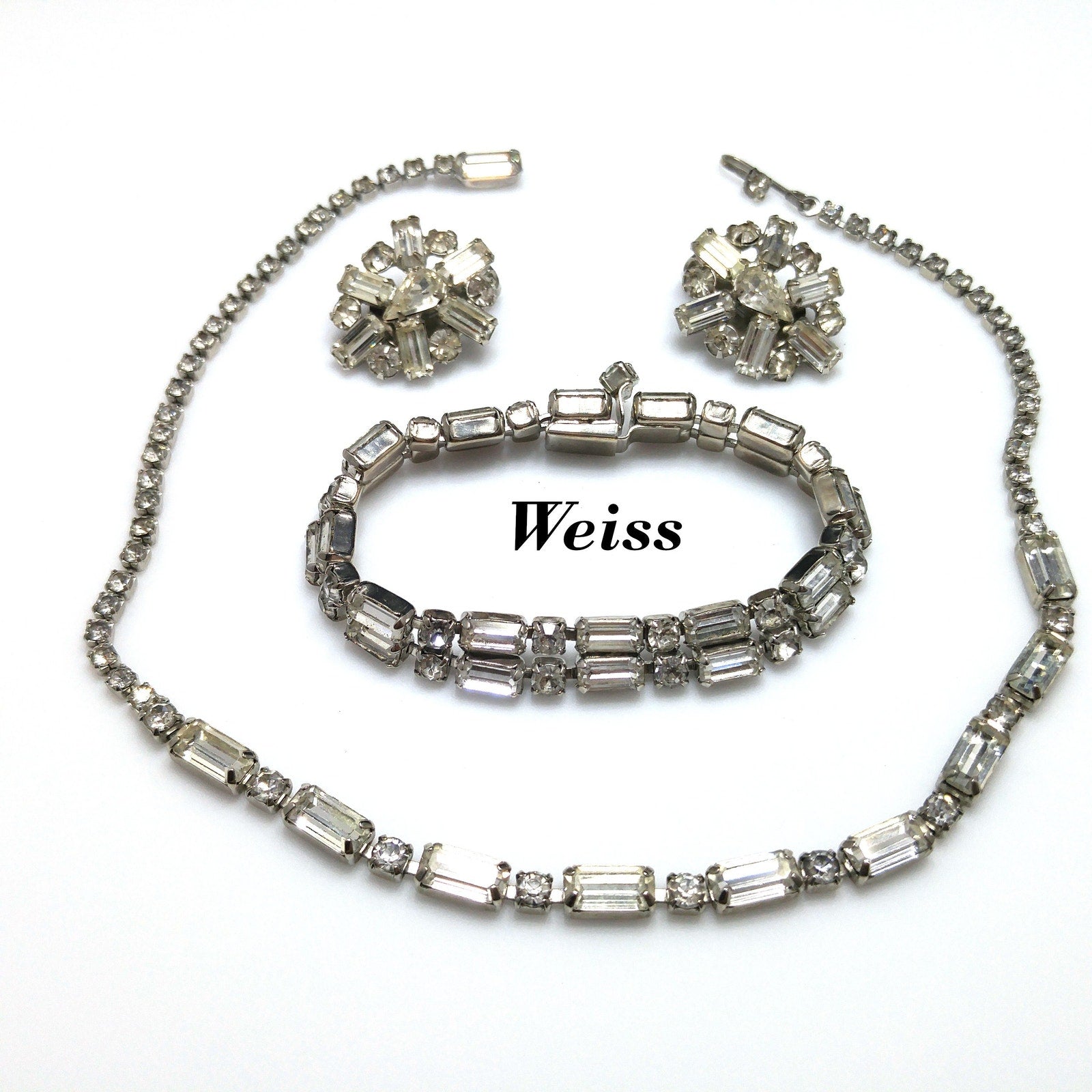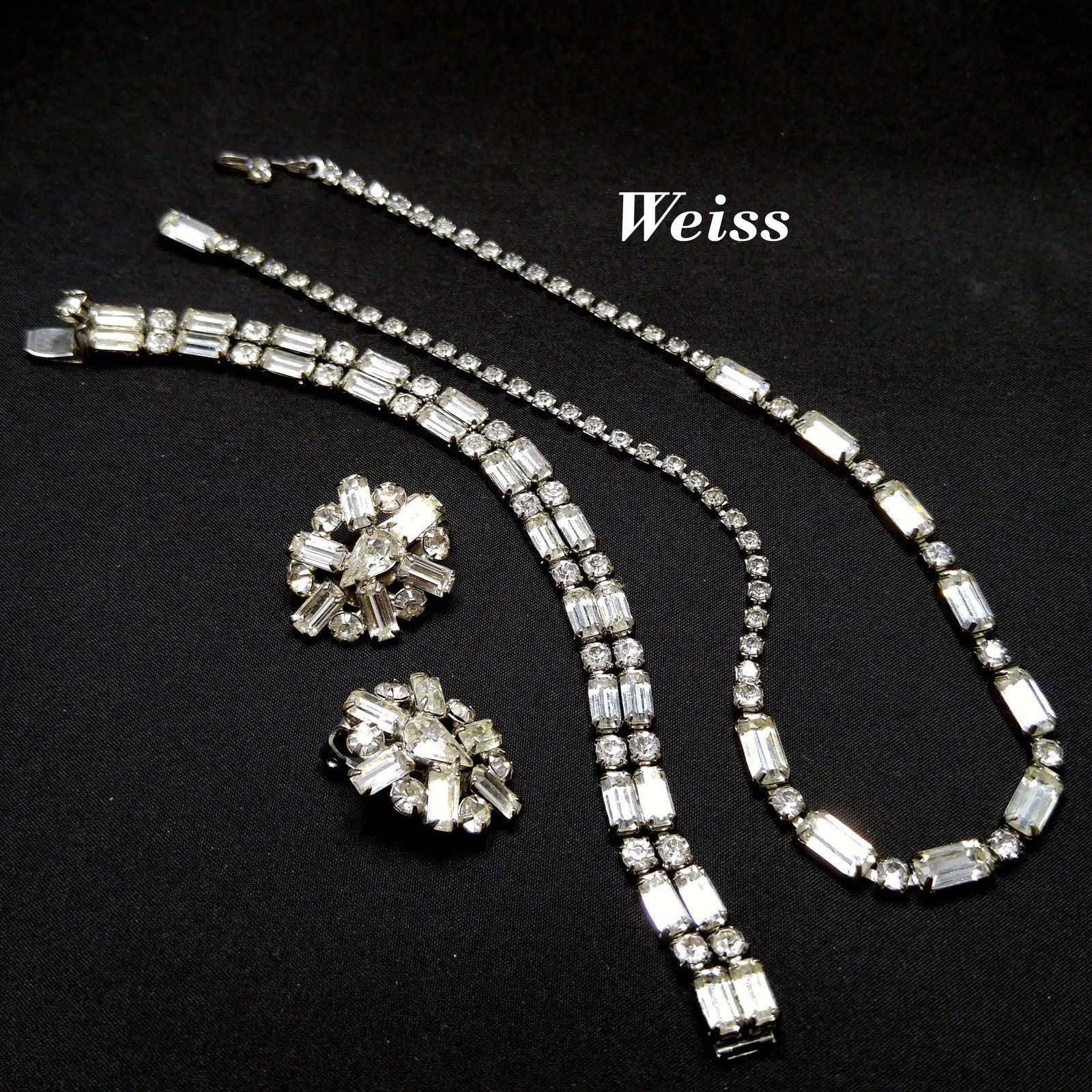 Earrings stamped WEISS; necklace and bracelet unsigned (typical of matching sets)