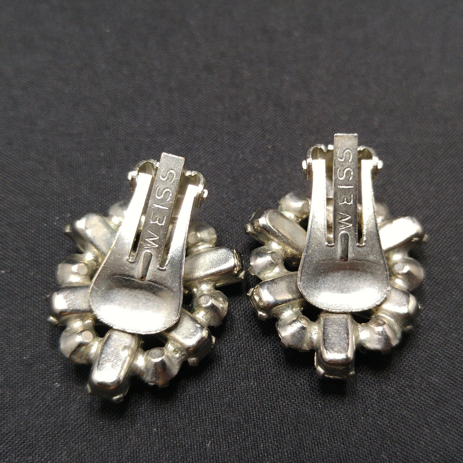 Although only the earrings are signed, the necklace and bracelet share identical design and construction traits, which is typical for Weiss sets produced during this era.
