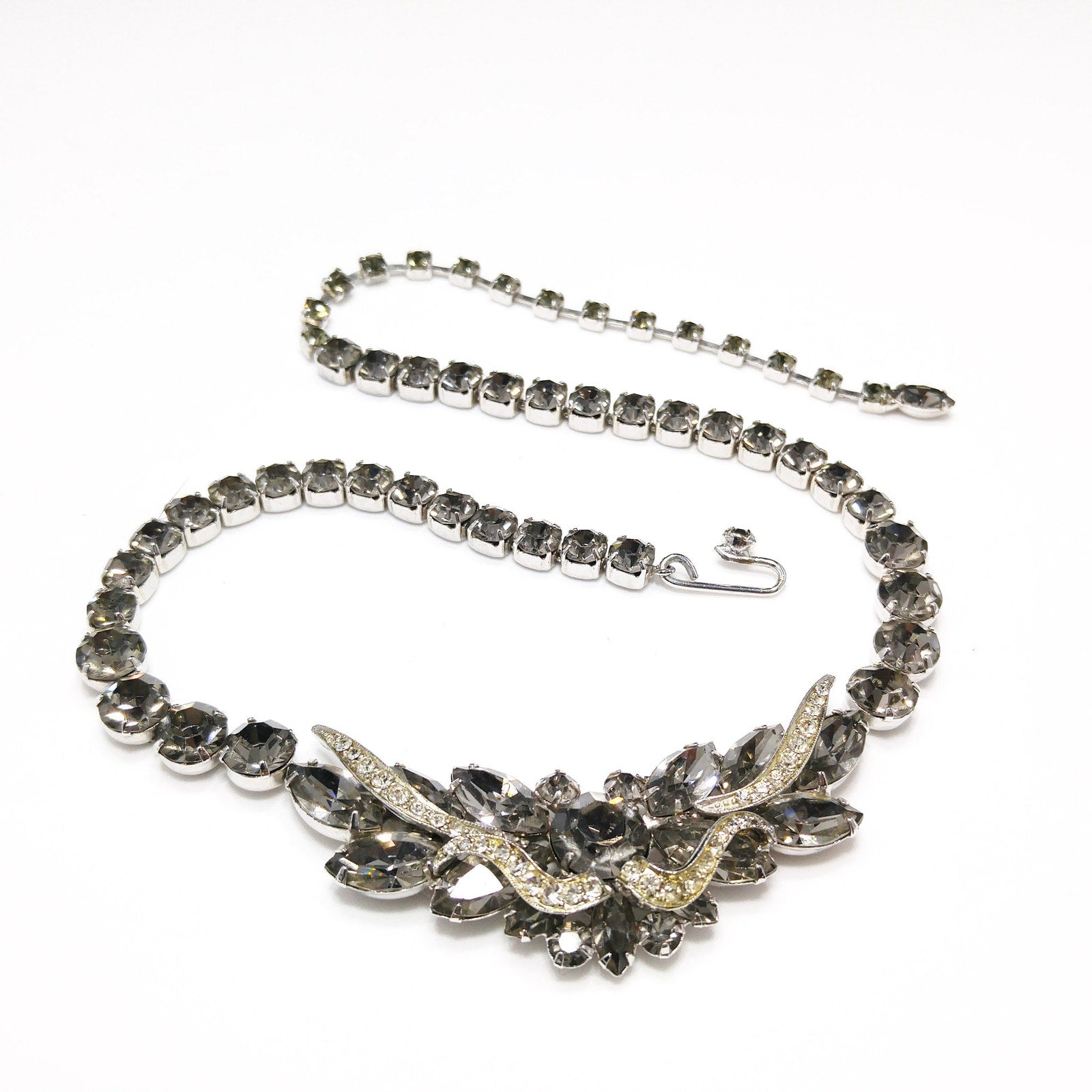 Weiss 1960s “Black Diamonds” Rhinestone Necklace – Smoky Gray & Clear Rhinestones