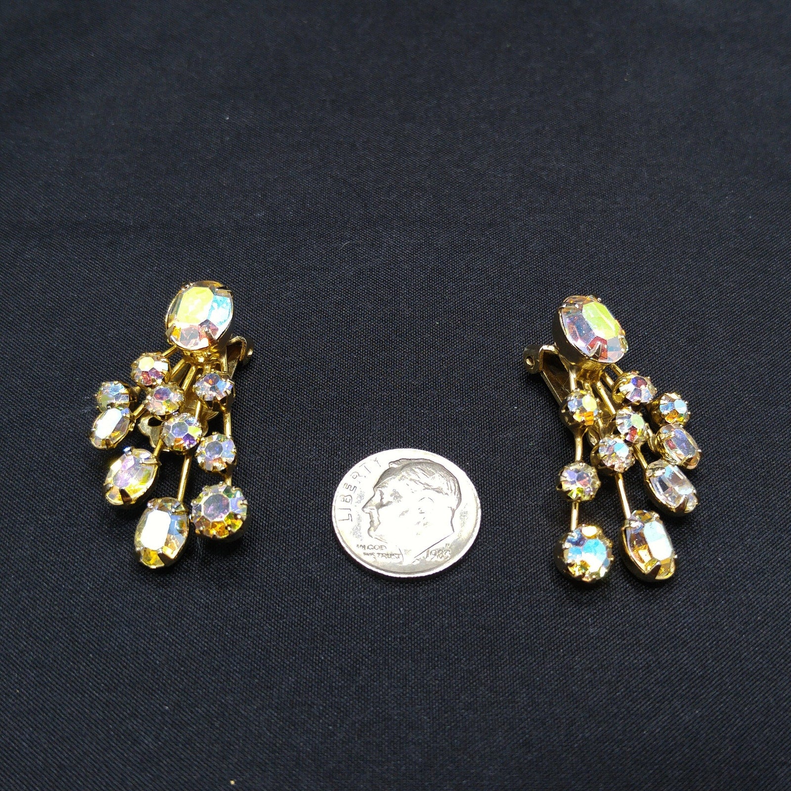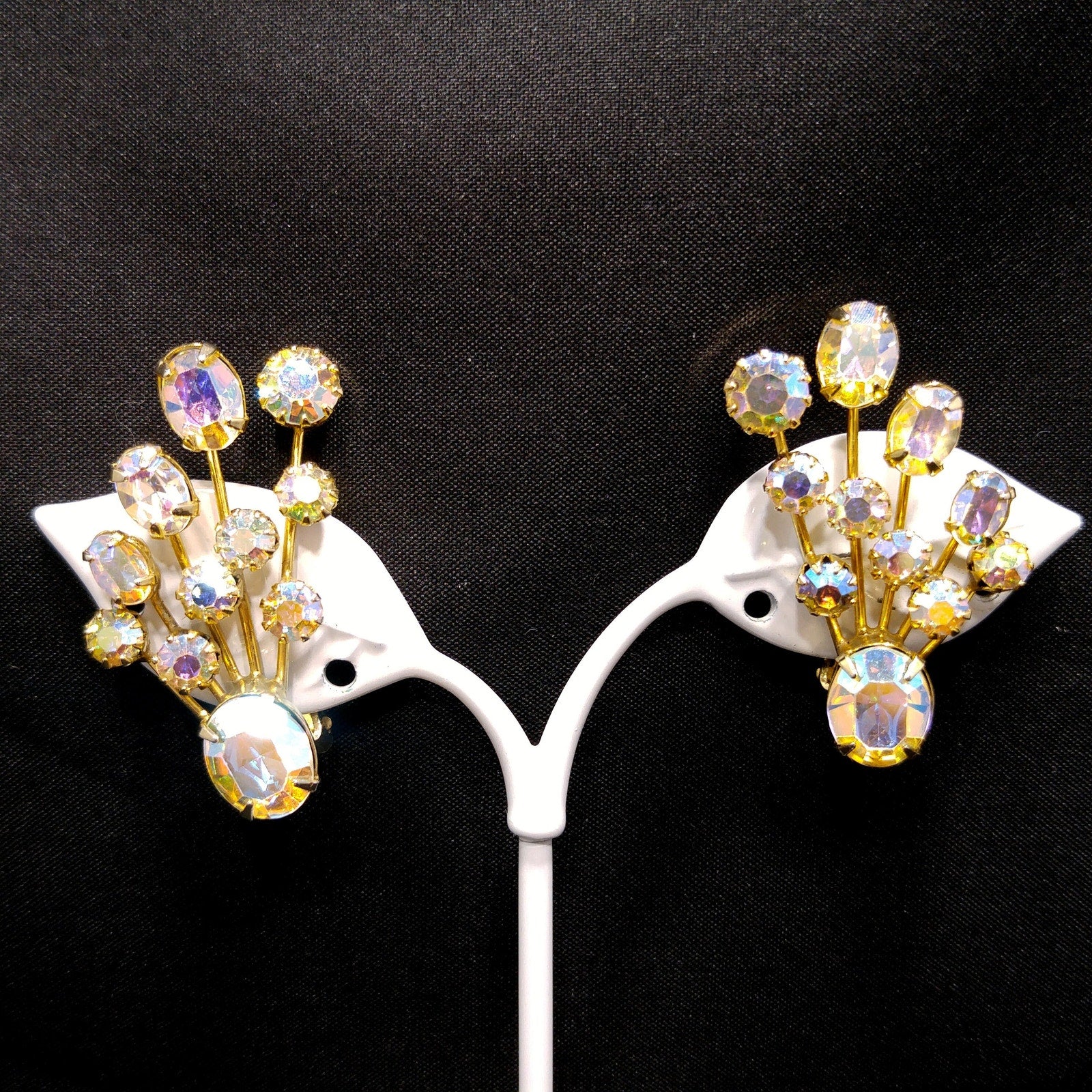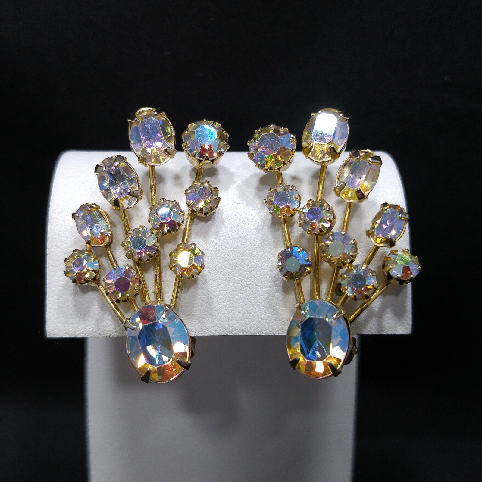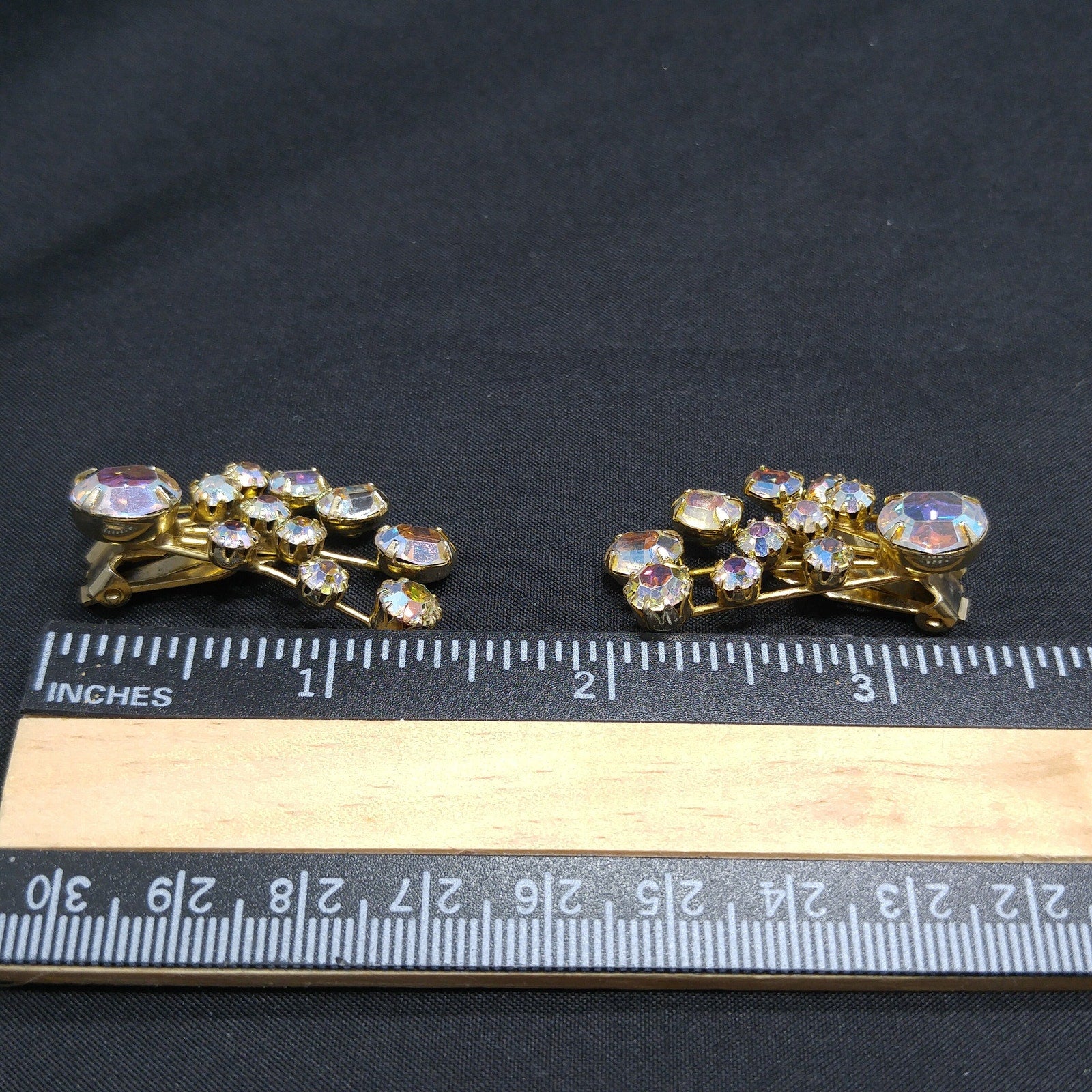 Weiss Aurora Borealis Ear Climber Earrings, Gold Plated, 1950s Vintage Jewelry