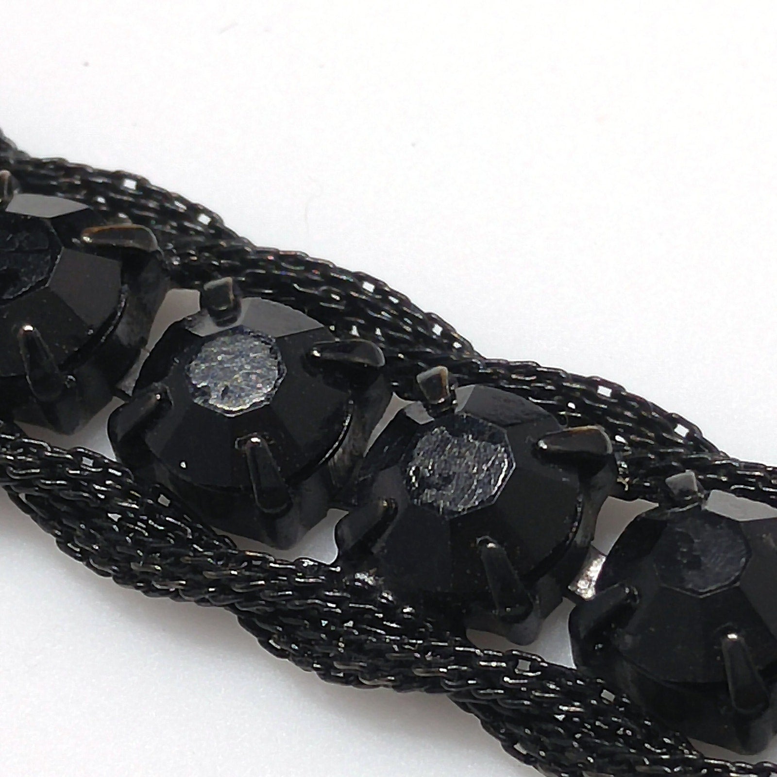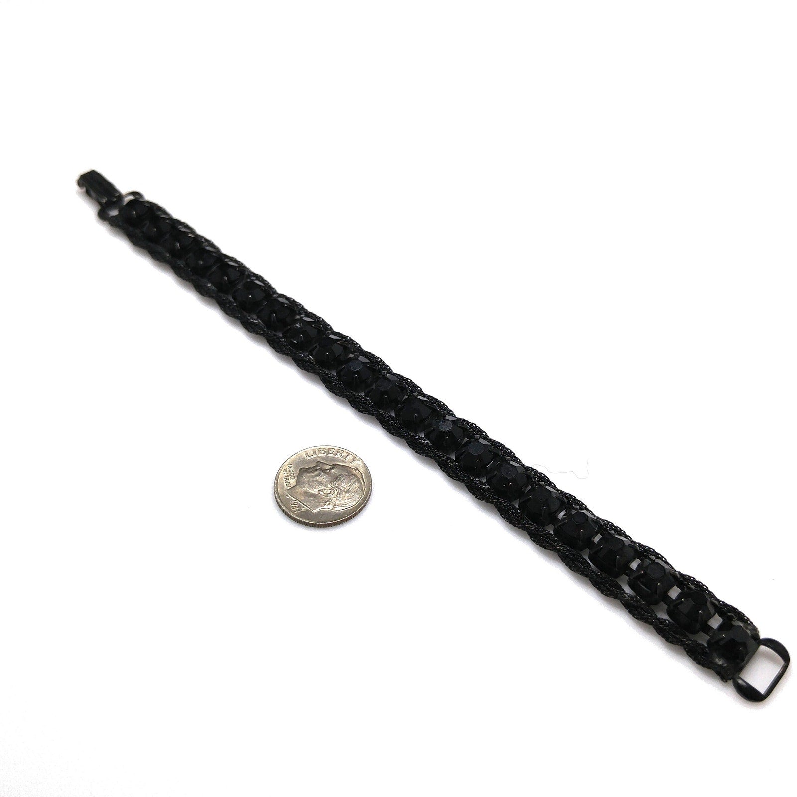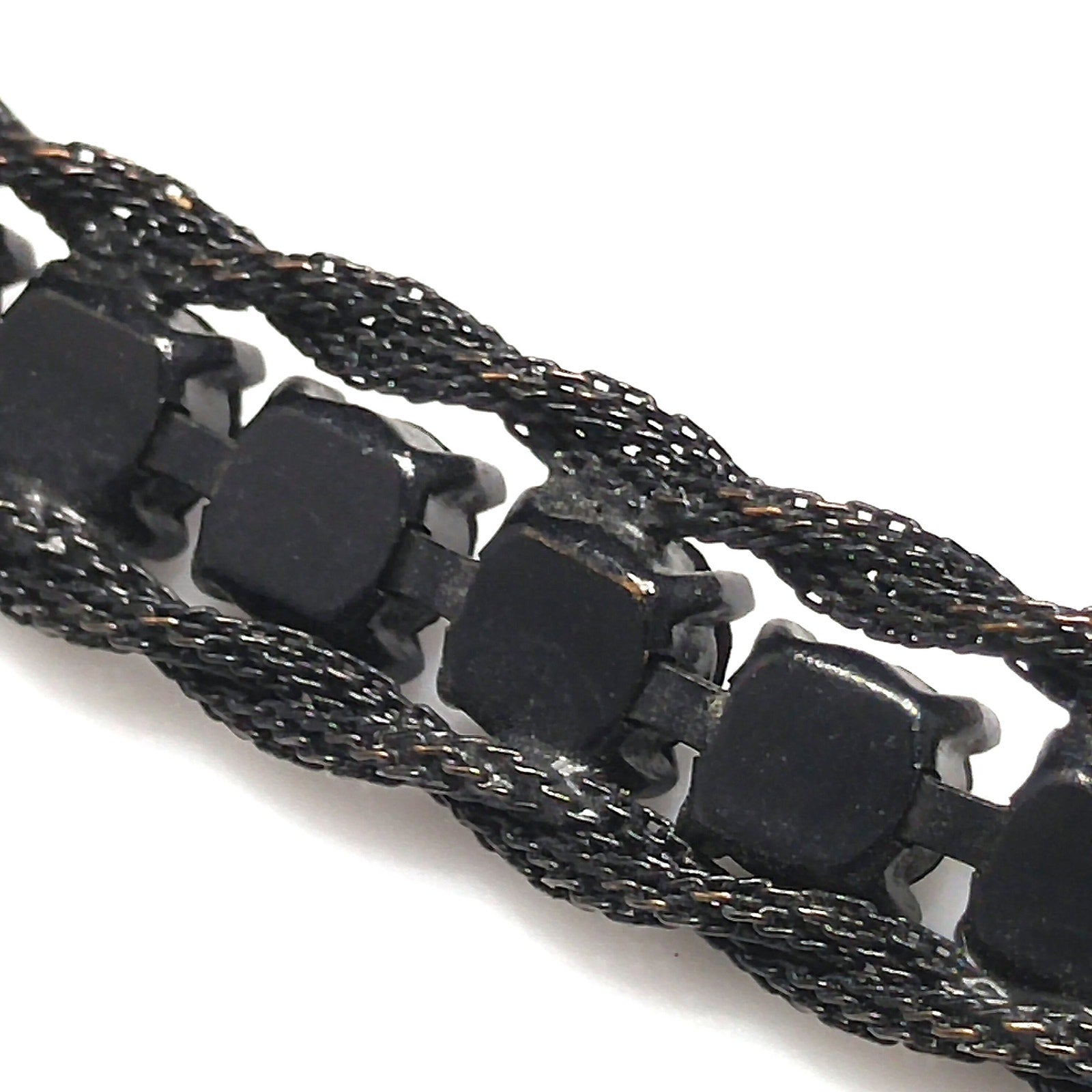 Weiss Black Japanned Bracelet, Black Rhinestones, 1950s Vintage Jewelry