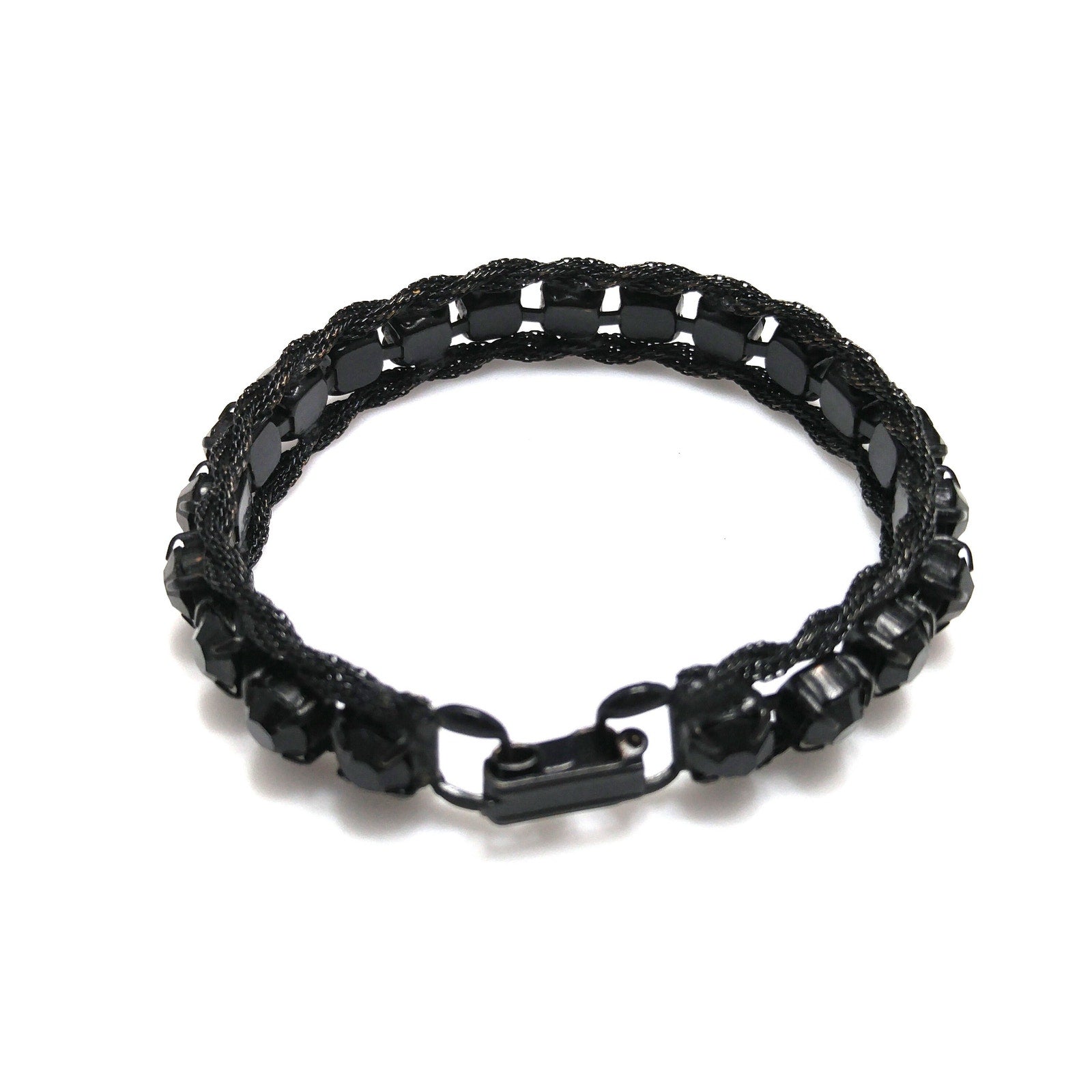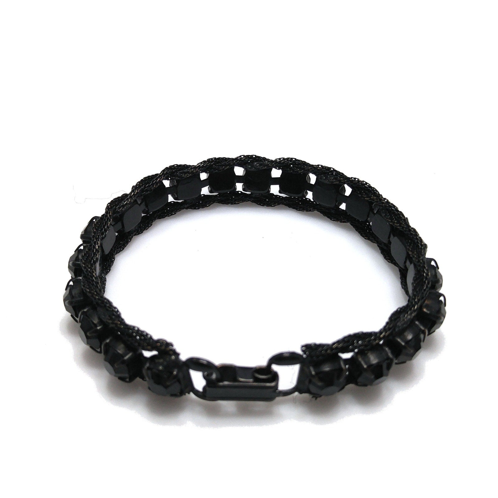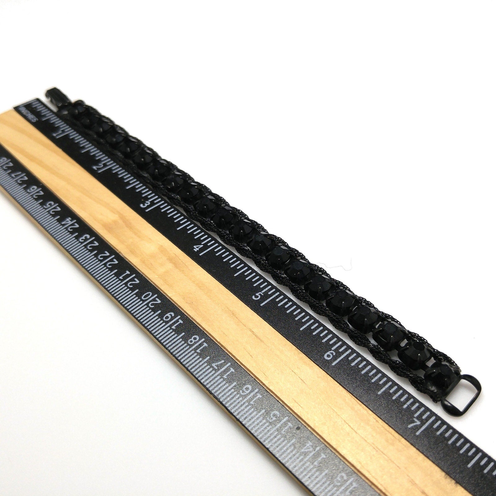 Weiss Black Japanned Bracelet, Black Rhinestones, 1950s Vintage Jewelry