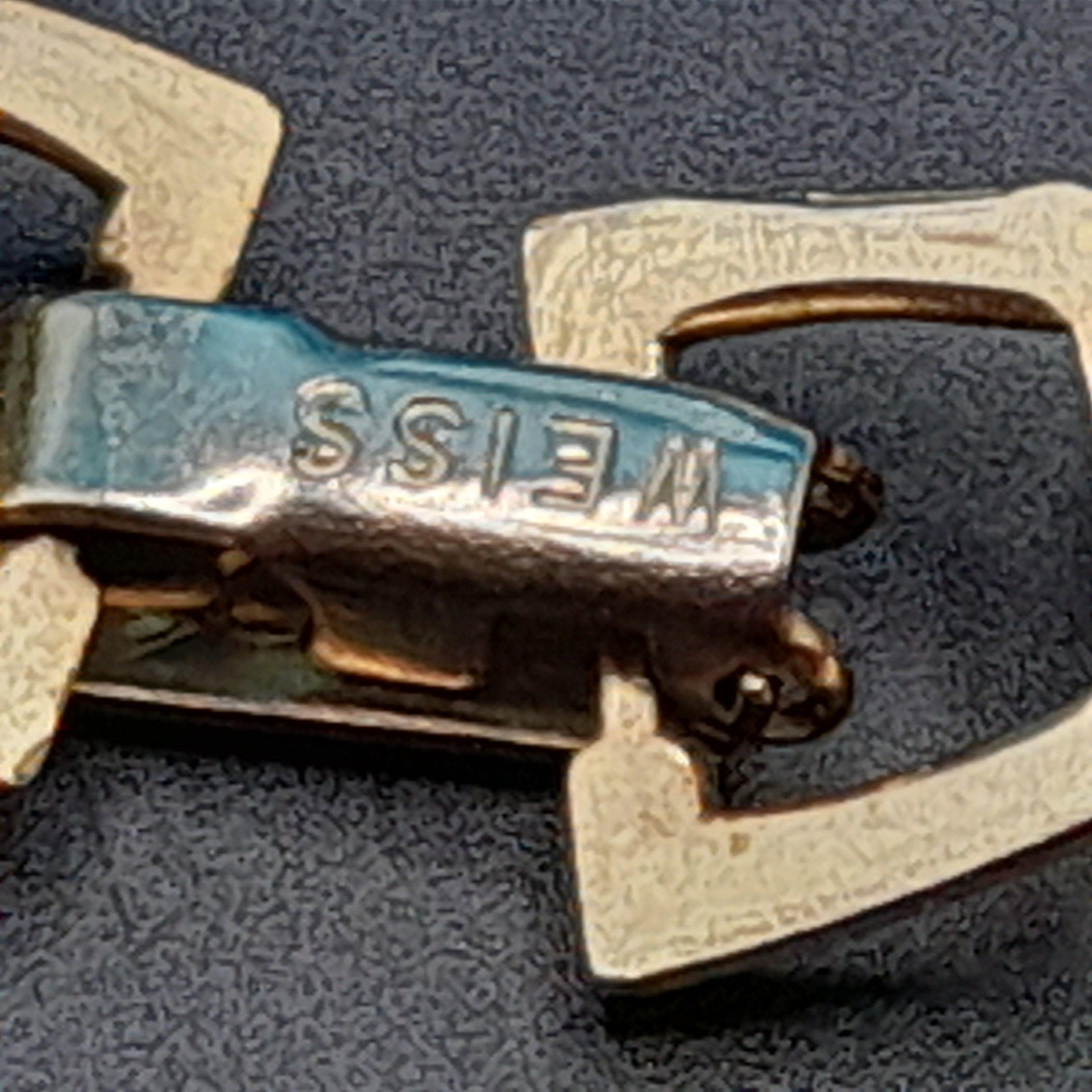 This bracelet showcases the timeless quality of Weiss craftsmanship, with secure prong-set stones, a fold-over clasp signed WEISS, and elegant mid-century styling. Perfect for holiday wear, formal occasions, or as a treasured gift for a vintage jewelry collector.