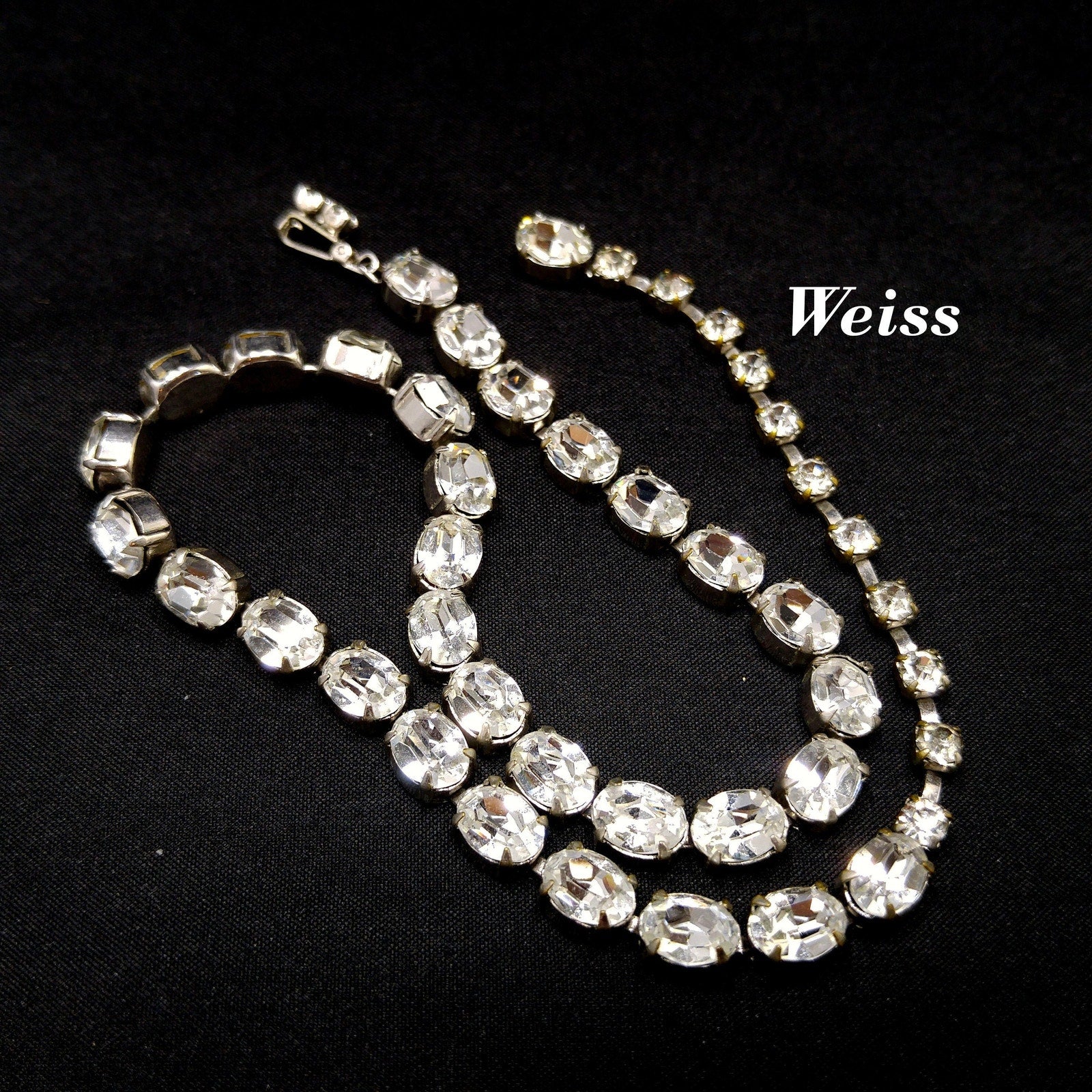 Weiss Rhinestone Choker Necklace, Oval Cut Wedding Necklace, 1950s Vintage Jewelry
