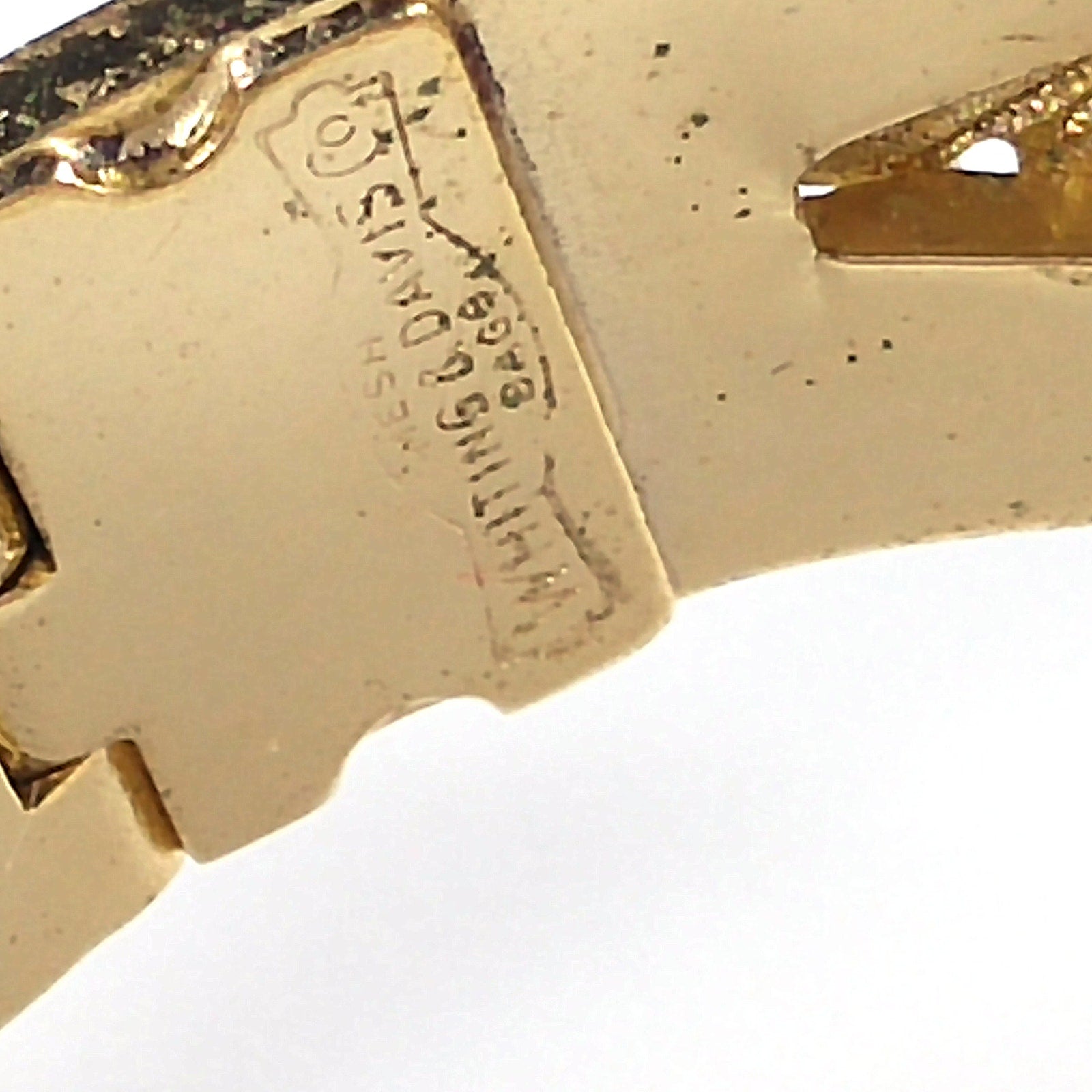 Whiting & Davis Cameo Intaglio Hinged Bracelet, Gold Plated, 1960s Vintage Jewelry