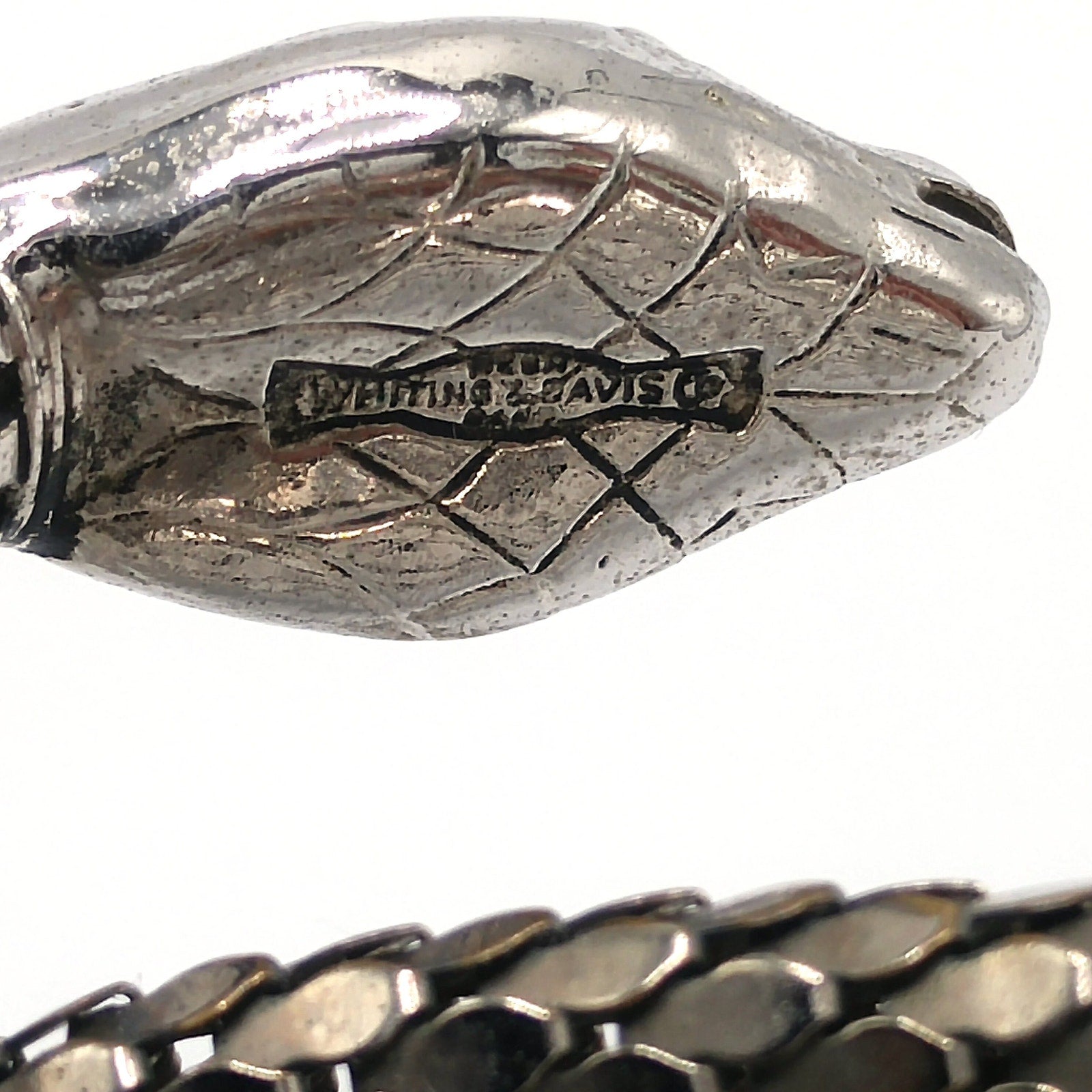 Stamped: WHITING & DAVIS MESH BAGS (inside serpent head)