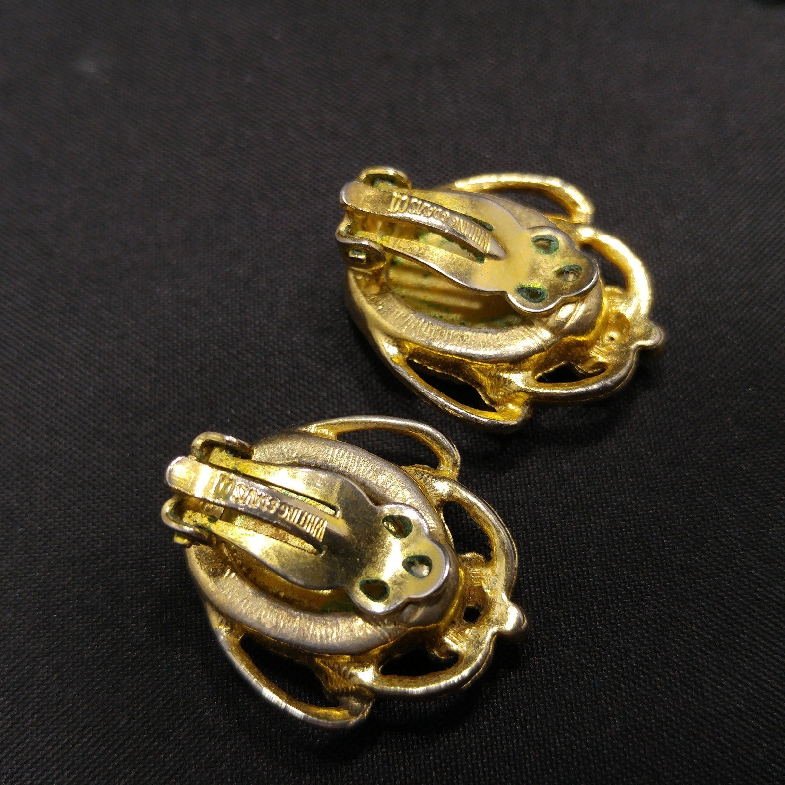 Tested as 10K gold plated on the surface metal, this set glows with warm golden tones and rich amber topaz detail. A must-have for cameo lovers and Whiting & Davis collectors.
